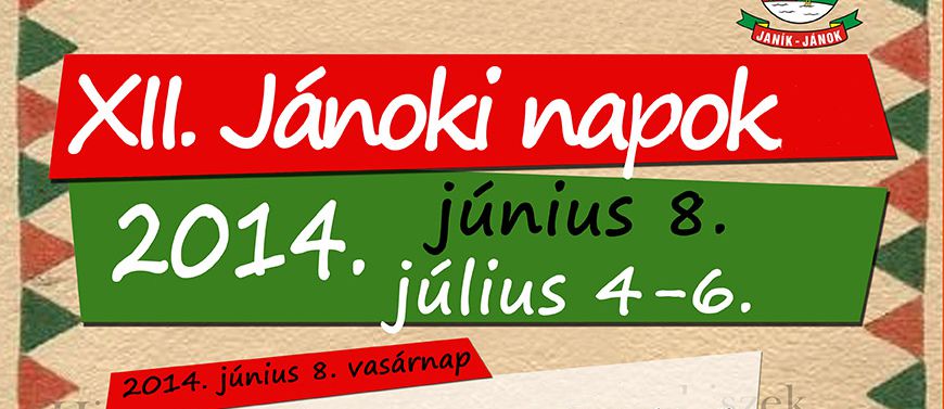 Jánok község Önkormányzata, a Csemadok Alapszervezet és a helyi Sportszervezet szeretettel meghívja a Jánoki napokra