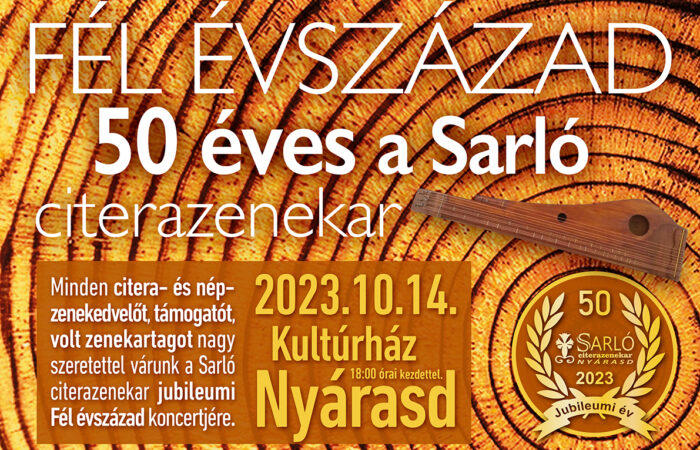 Minden citera- és népzenekedvelőt, támogatót volt zenekartagot nagy szeretettel várunk a Sarló citerazenekar jubileumi Fél évszázad koncertjére.