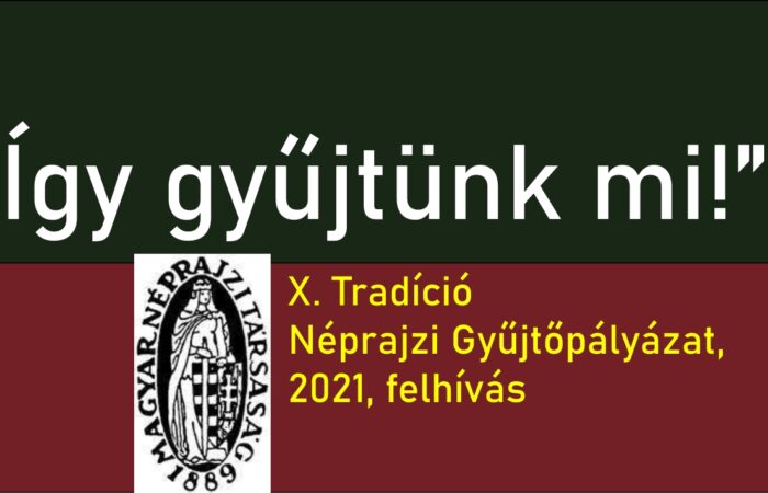 X. Tradíció Néprajzi Gyűjtőpályázat, 2021, felhívás A Magyar Néprajzi Társaság 2020. június 1-én gyűjtőpályázatot hirdet az alábbiak szerint: A Tradíció...