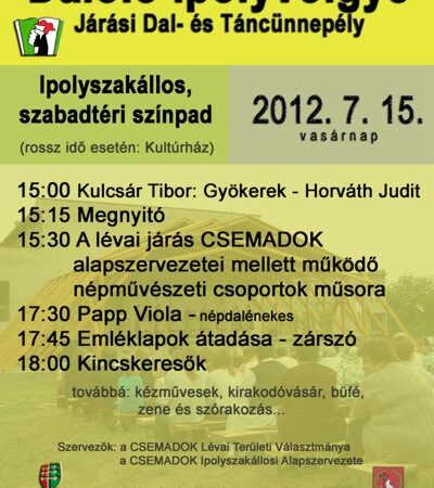 A Csemadok Nógrádi Területi Választmánya, ragyolci alapszervezete, Ragyolc község és a Nógrádi Művelődési Központ július 21-22-én rendezik meg a XII....