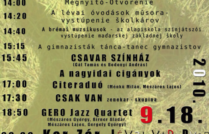 a lévai Várudvarban, 2010. szeptember 18-án 14.00 órától