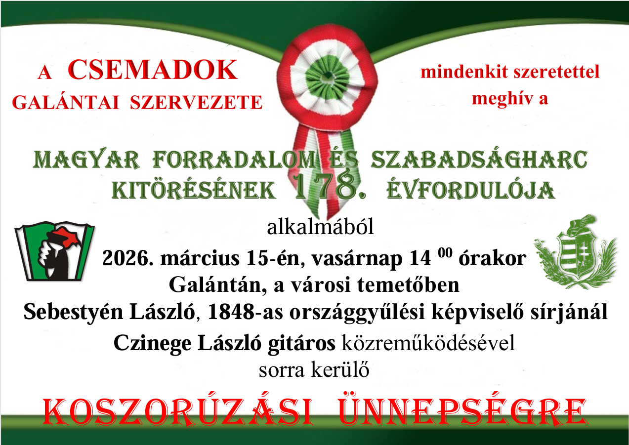 A Csemadok Tornaljai Területi Választmánya és a Rákóczi Szövetség helyi szervezete tisztelettel meghív mindenkit az 1848–49-es forradalom és szabadságharc tiszteletére rendezett megemlékezésre. Időpont: 2026. március 16. (hétfő) Helyszínek és program: […] |