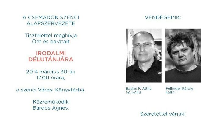 A Csemadok Szenci Alapszervezete 2014. március 30-án, 17 órai kezdettel Irodalmi délutánt szervez a Városi...