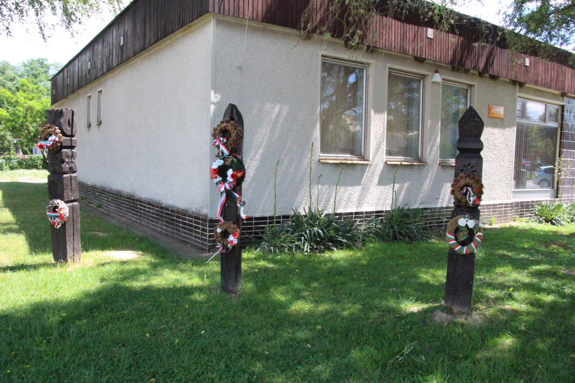 A kopjafákat az 1986-1987-1988-ban, a szabadtéri színpad mellett rendezett nyári ifjúsági táborokban faragták, évente egyet. Faragójuk a rimaszombati Nagyferencz Katalin. Később a kopjafákat a település központjába helyezték át, ahol a falu közössége évente nemzeti megemlékezéseit tartja.