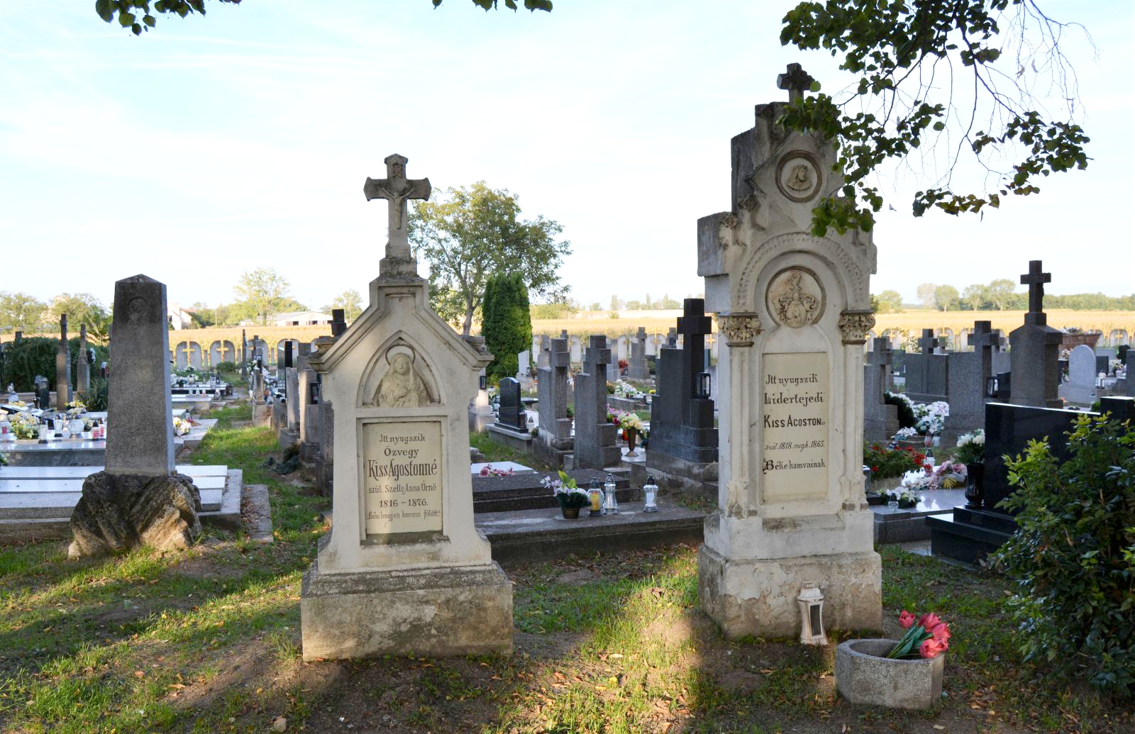 A Kiss házaspár síremlékeit a temető bejáratával szemben találhatjuk meg.