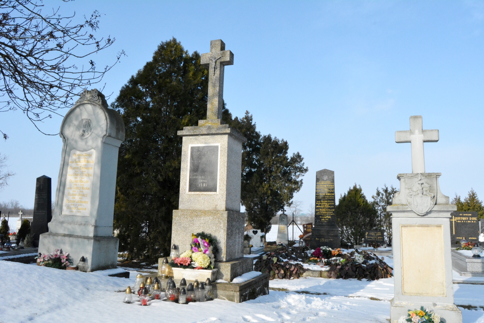 A temető öntöttvas korpuszú központi keresztjét a 20. század elején állították. 1985-ben a kereszt felső részét betonnal erősítették meg. 2002-2003-ban felújították és a környékét virágokkal ültették be. A temetőben már a 19. század elején is állt egy fakereszt.Read More