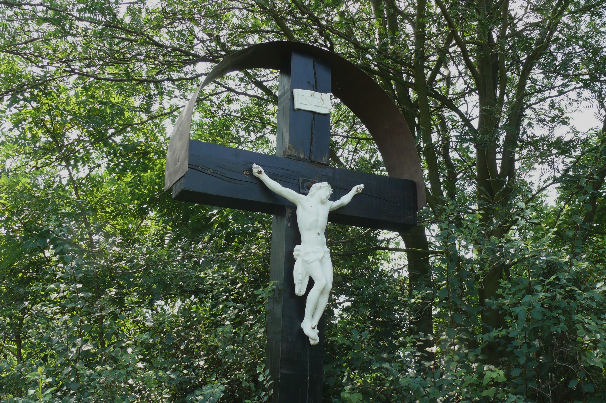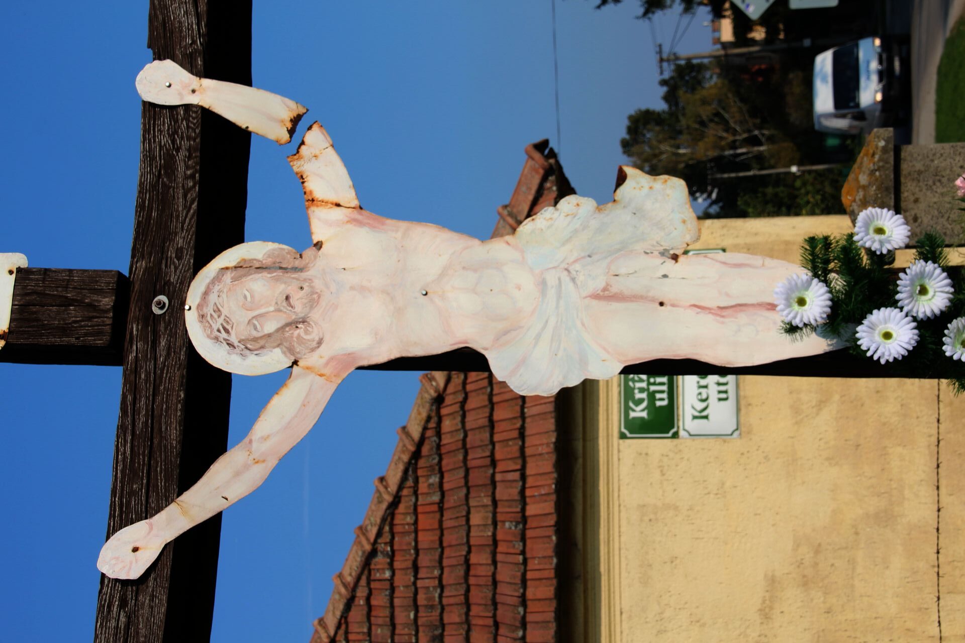 Rózsaszínű kereszt az út mellett a sarkon. Felirata: JÉZUS ISTEN FIA DICSŐSÉGÉRE EMELTETTE A NEGYED R. K. HITKÖZSÉG 1905. A kereszt felállításának idején, még itt volt a falu vége.Read More