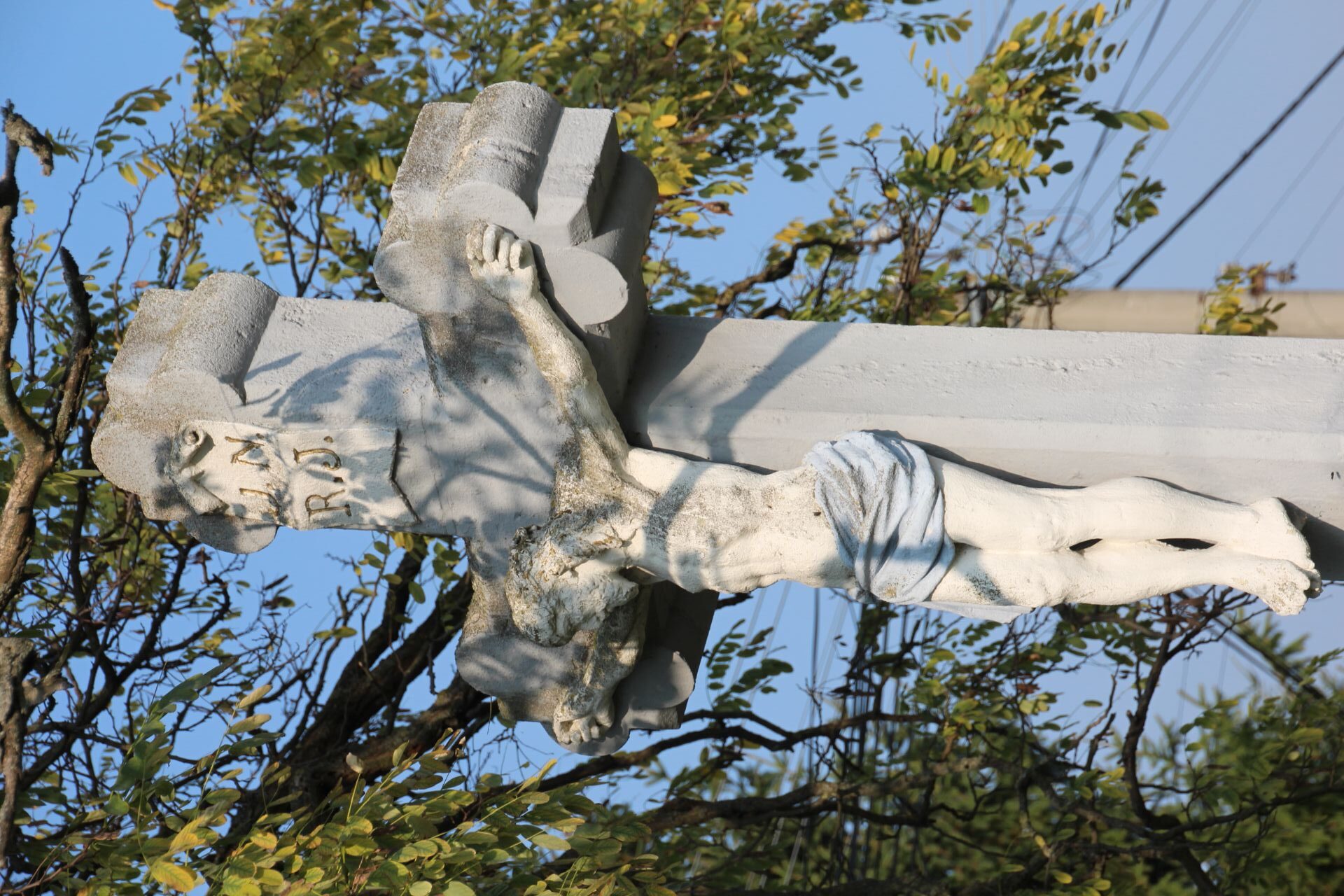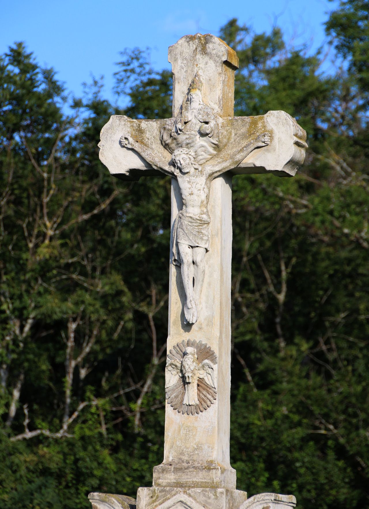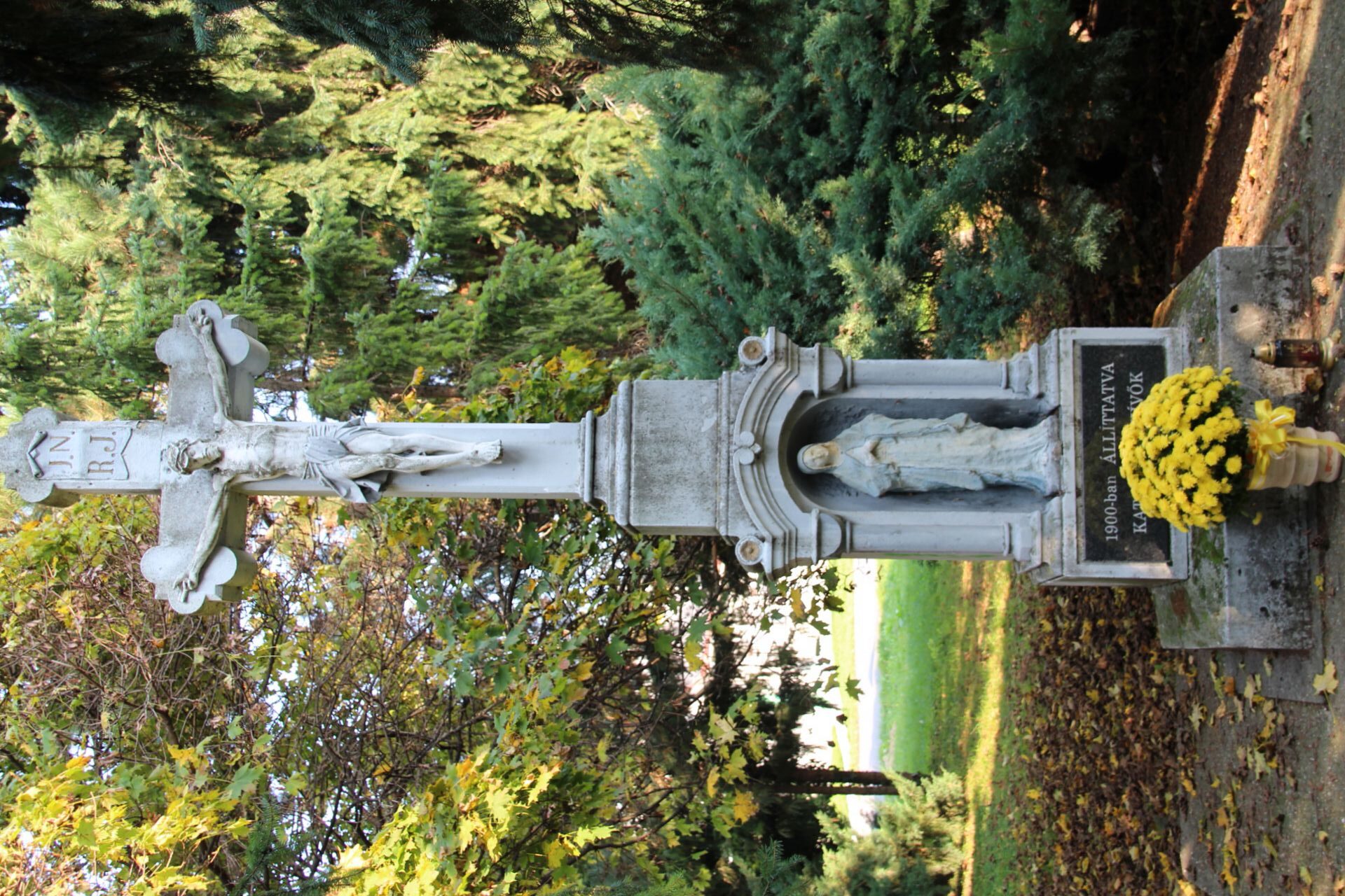 Az újabb központi kereszt szürke műkőből készült. A betonalapzaton álló, egyenes szárvégű kereszt oszlopán ez a dedikáció áll: „Isten dicsőségére állította özv. Kráncs Jánosné 1968. Jézus add, hogy hozzád térjek, veled haljak, veled éljek.” A kereszten ezüstözött vaskorpusz látható, jobbra fordított fejjel, kifeszített karokkal, egymás mellé helyezett két lábszárral.Read More
