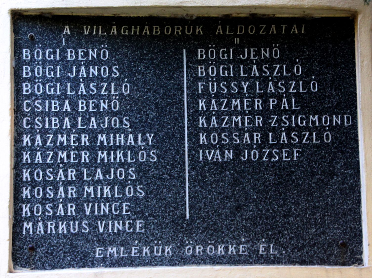 A katolikus templom kertjében található az eredetileg az első világháború katolikus áldozatainak emlékére emelt emlékkereszt, amelyet később a második világháborúban elesettek névsorával is kiegészítettek. Az I. világháborús emlékmű teljeskörű felújítására a Bethlen Gábor Alapkezelő Zrt. támogatásával került sor 2018-ban. Az emlékmű alsó talapzata teljesen új 2,6 x 2,6 m nagyságú kétlépcsős betonalapot kapott. Erre a betonalapra...Read More