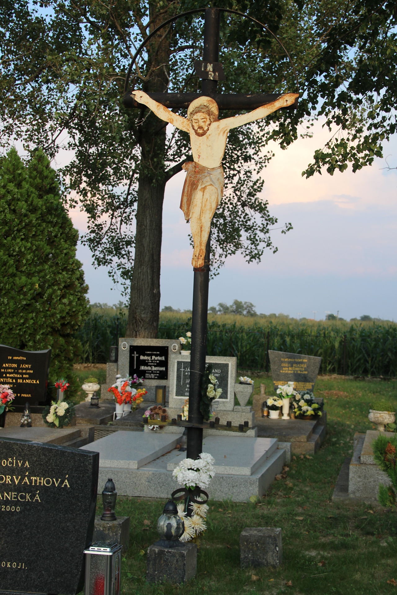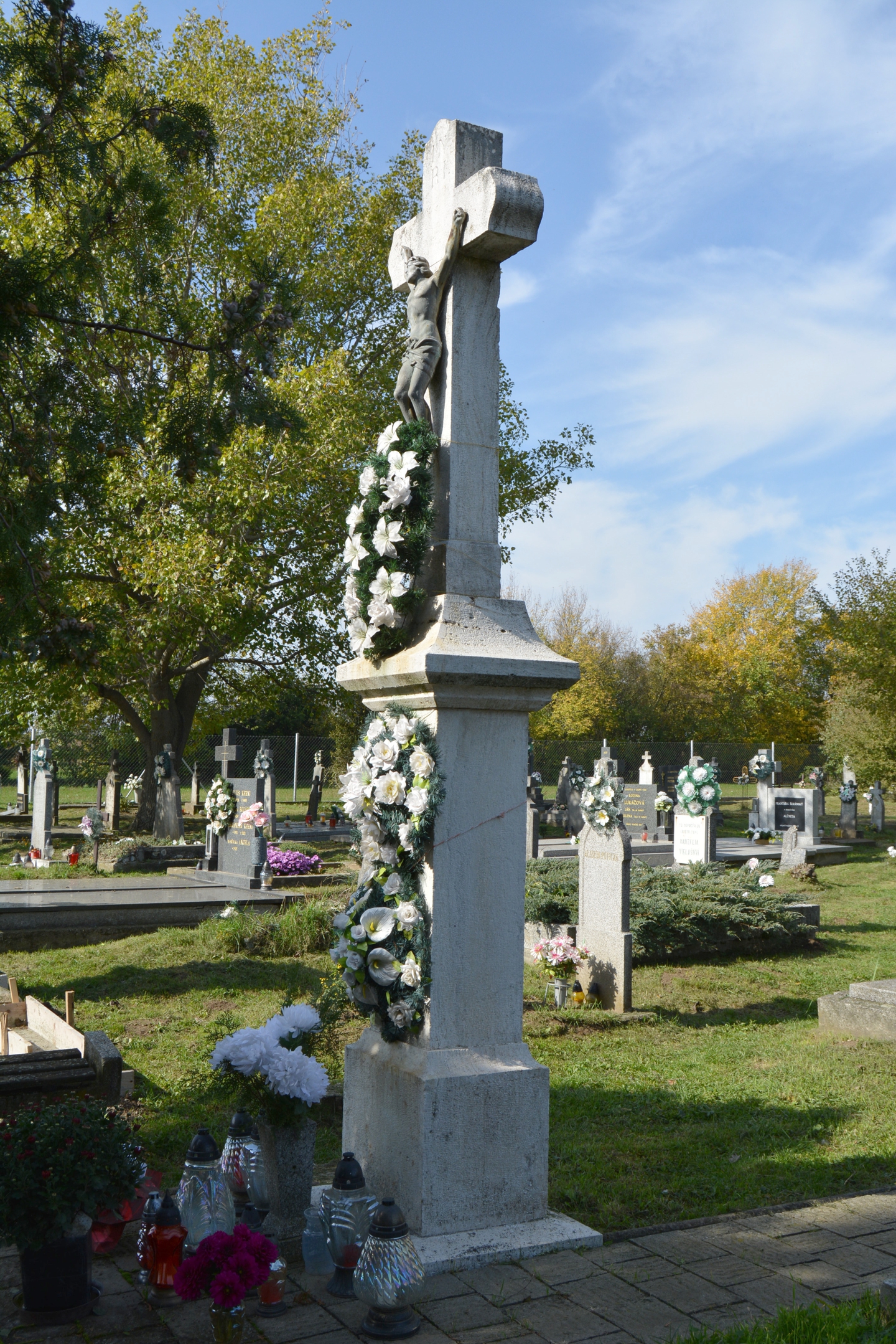 A falu központjában található kereszt, betonból. A Krisztus korpusz barnára van festve, kezei közel függőleges tartásban, lábai szorosan egymás mellett. Tekintete felfelé néz. Feje felett INRI felirat látható. A talapzaton felirat, alatta kereszt, létra látható. Zöld kerítéssel övezett emlék. Az egykori templom helyére állították.Read More
