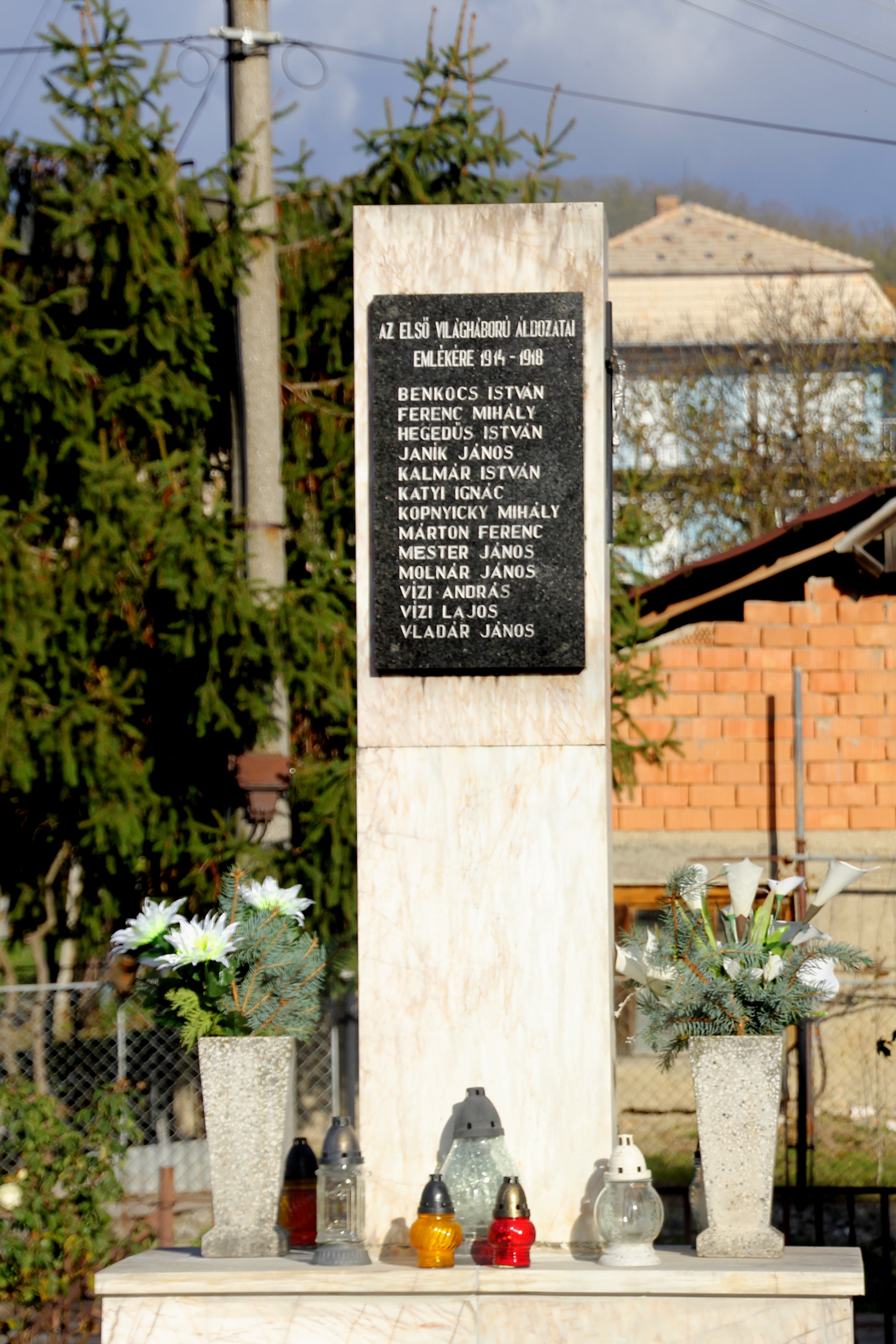 Az első és második világháború sok áldozatot követelt. Az ő emléküket őrzi az 1993-ban a ravatalozó mellett közadakozásból felállított emlékmű. Itt olvashatjuk a falu minden háborús áldozatának nevét, de emléket állít azoknak az ismeretleneknek is, akik a háborúban a faluban vesztették életüket és itt lettek eltemetve. Az emlékművet egy emelt térre építették. Két falból áll....Read More
