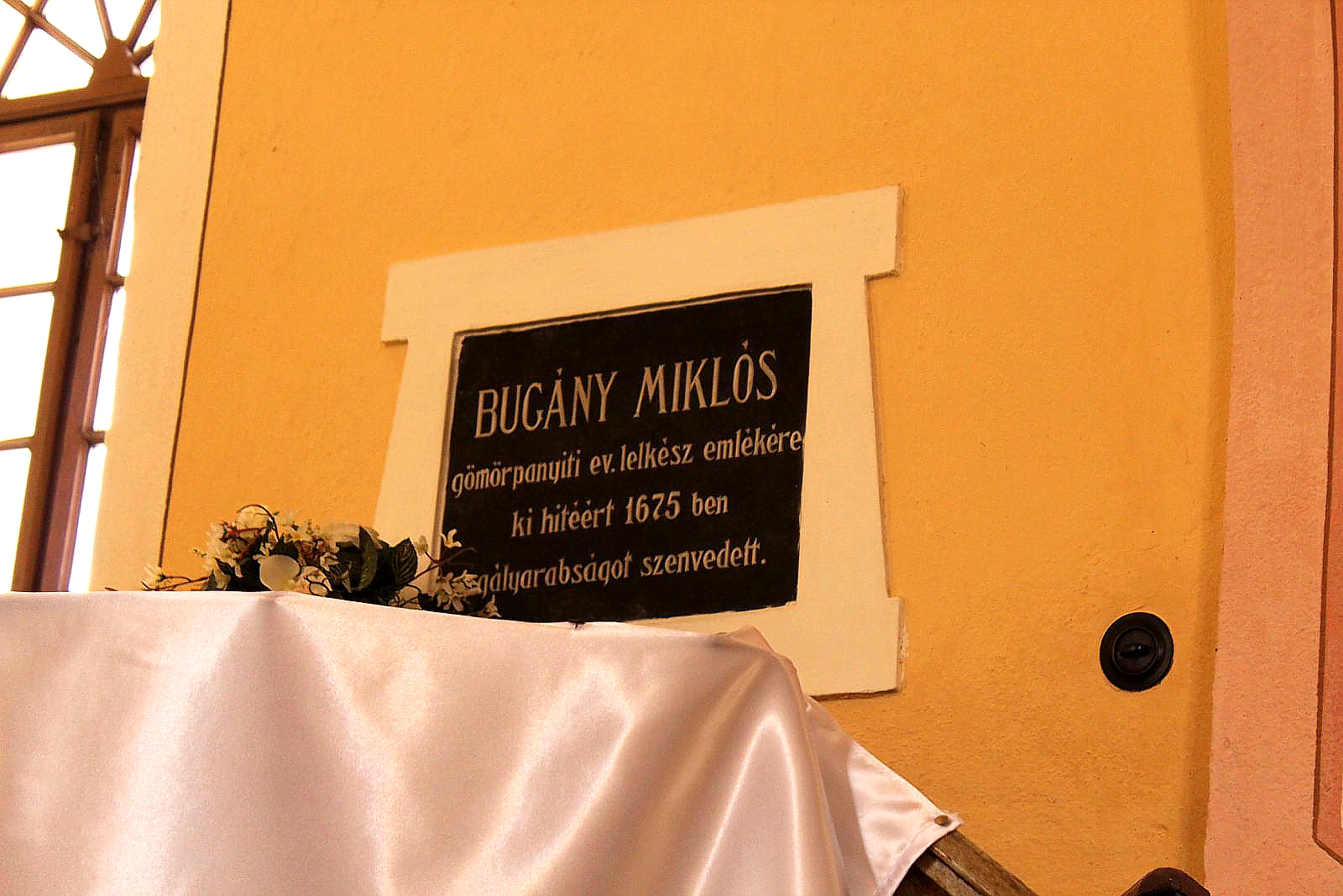 Bugányi Miklós sajógömöri evangélikus lelkész emléktáblája, aki hiteért 1675-ben gályarabságot szenvedett. Állíttatta az egyházközség 1925-ben.Read More