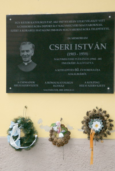 Cseri István esperes 1944-48 között volt Nagymegyer római katolikus esperes plébánosa. 1947-ben meglátogatta a Csehorszába deportált nagymegyeri magyar családokat, hogy lelkivigaszt nyújtson nekik. A hatalom mindezt 1948-ban megtorolta és büntetésként 1948. október 19-én kitelepítette Magyarországra, Budapestre került, ahol a Krisztus Király templom plébánosa lett. Állandó kapcsolatott tartott fenn itthon maradt, s Magyarországra telepített híveivel. Az...Read More
