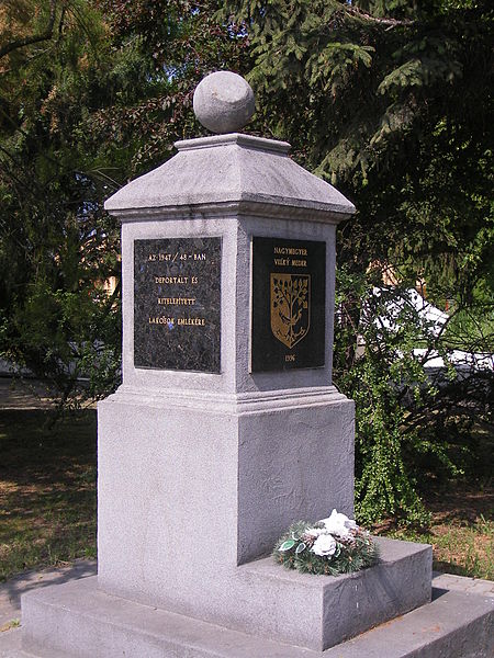 Az emlékművet 1996-ban, a nagymegyeri deportált és kitelepített lakosság első talalkozója alkalmából leplezték le. A hontalanság korában, 1945-48 között 539 személyt (köztük 83 gyermeket) deportáltak Csehországba és 205 családot telepítettek Magyarországra. A célállomások közé tartozott Mezőmegyer (16 család), Gerendás (13 család), Elek (8 család), Csorvás (3 család), Mezőberény (6 család), Magócs (2 család), Újkígyós (1...Read More