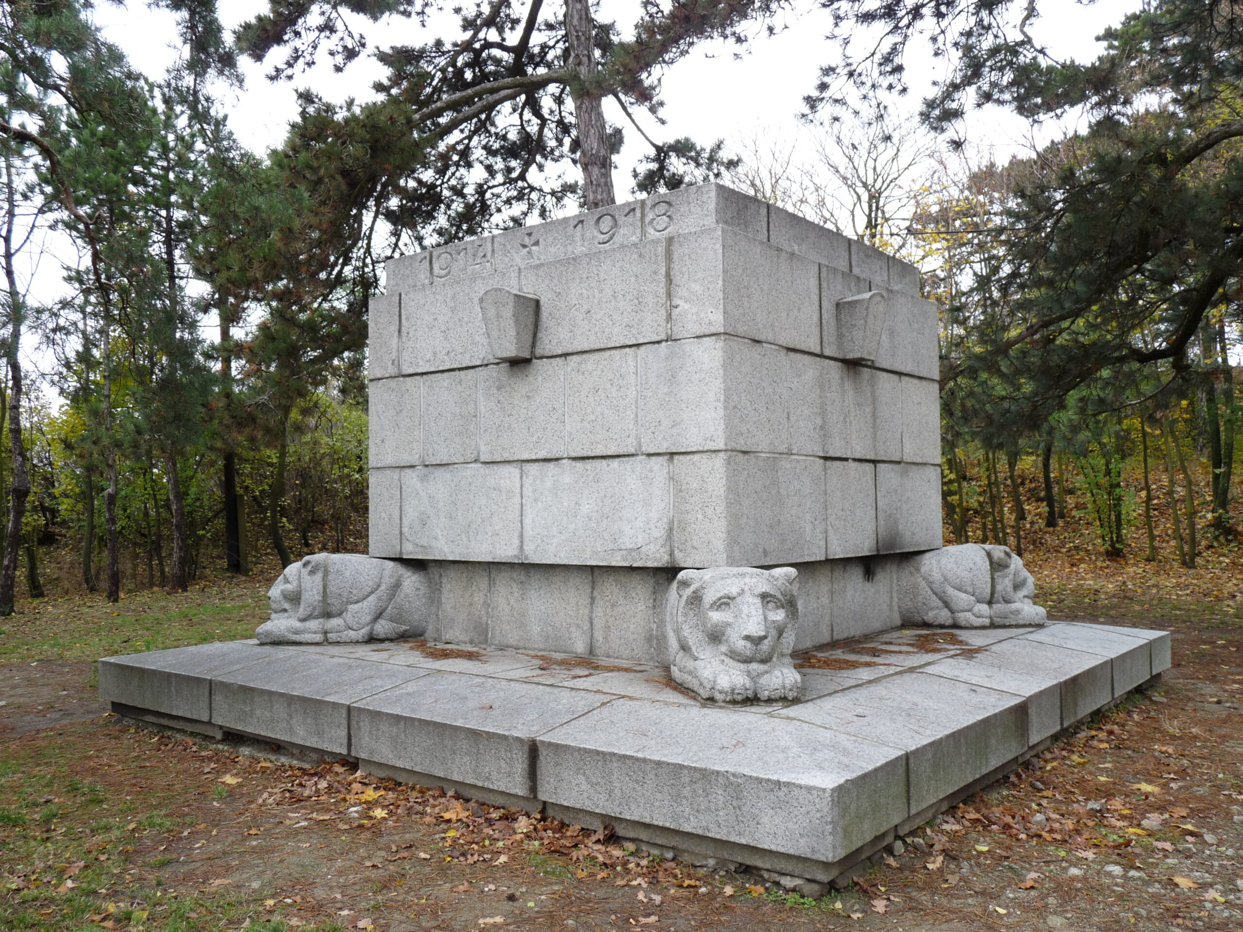A Rigele Alajos által 1925-ben készített hősi emlékmű egy kő szarkofág, amelyet négy oroszlán tart a vállán. Az építészeti terveket Szőnyi Endre (Jászberény, 1885 – Pozsony, 1968) és Franz Wimmer (Pozsony, 1885 – Locham, 1953) készítették. Szőnyinek és Wimmernek a két világháború között közös építészeti irodája volt Pozsonyban. Egyes források szerint az építményhez felhasználták Fadrusz...Read More