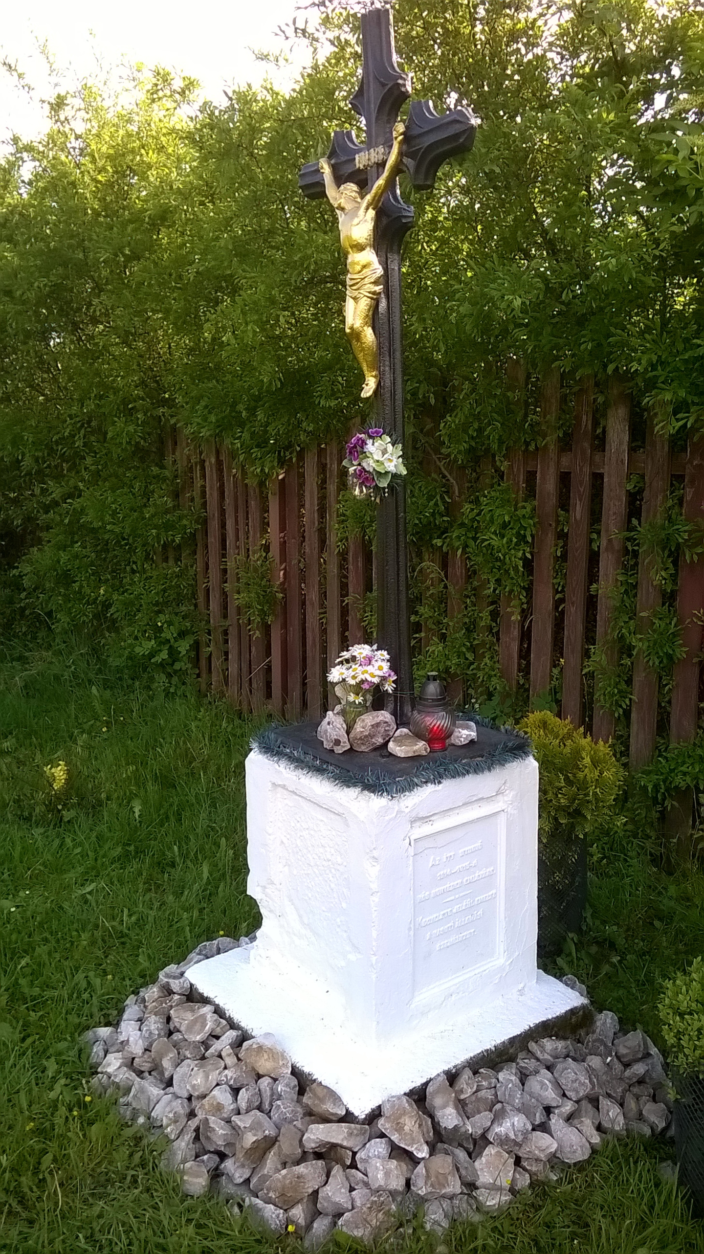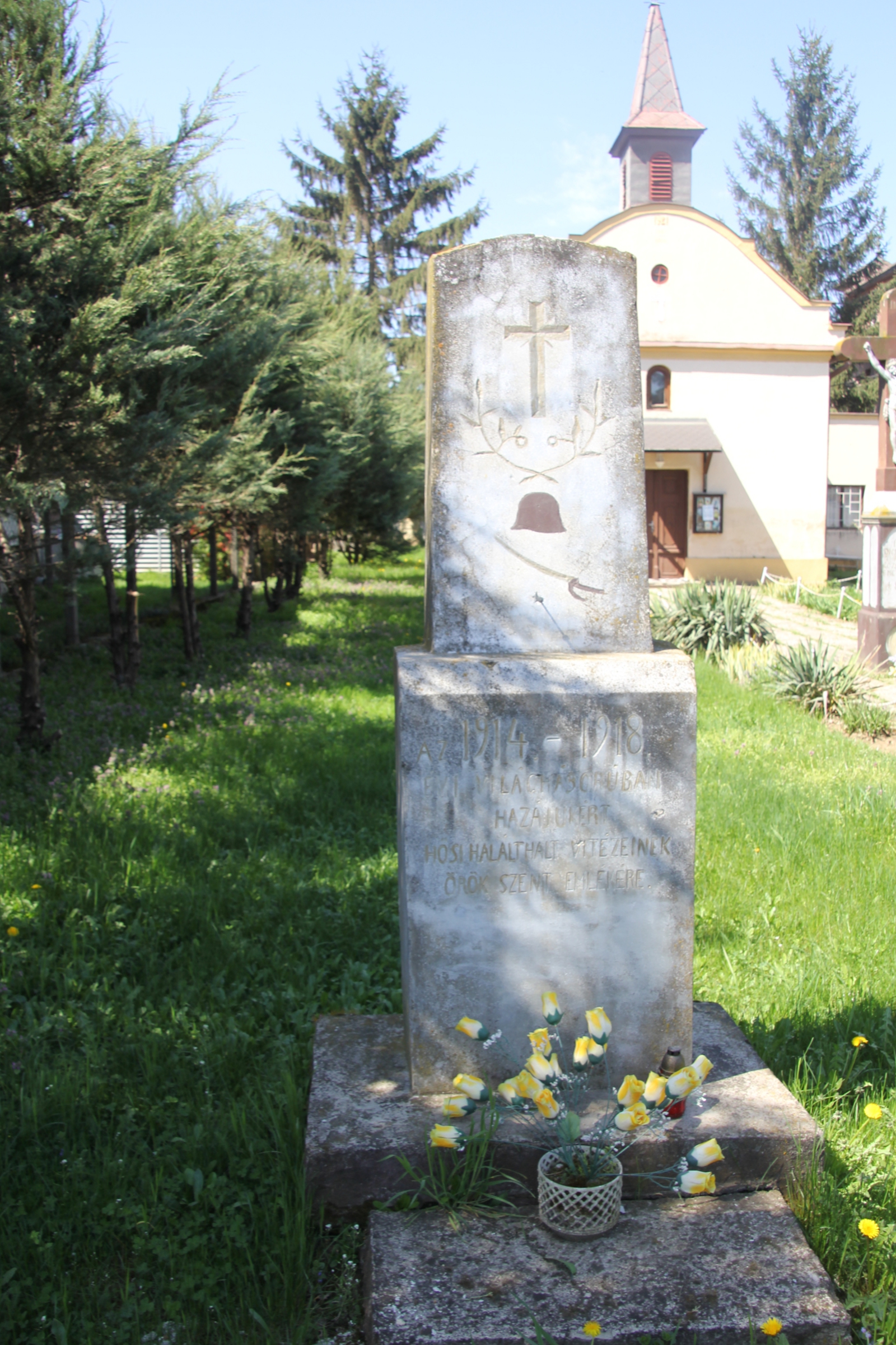 A Szent Mihály arkangyal templom kertjében, buja vegetációval övezett – és ezért könnyen szem elől téveszthető – közegben áll az a kereszt, melyet az I. nagy háborúban elesettek emlékére állíttattak. A faragott kőből készült talapzatra rögzített kereszt anyaga teljes egészében öntöttvas, amit barna festékkel kezeltek le, a korpusz és a szöveg betűi ezüst színűek.Read More