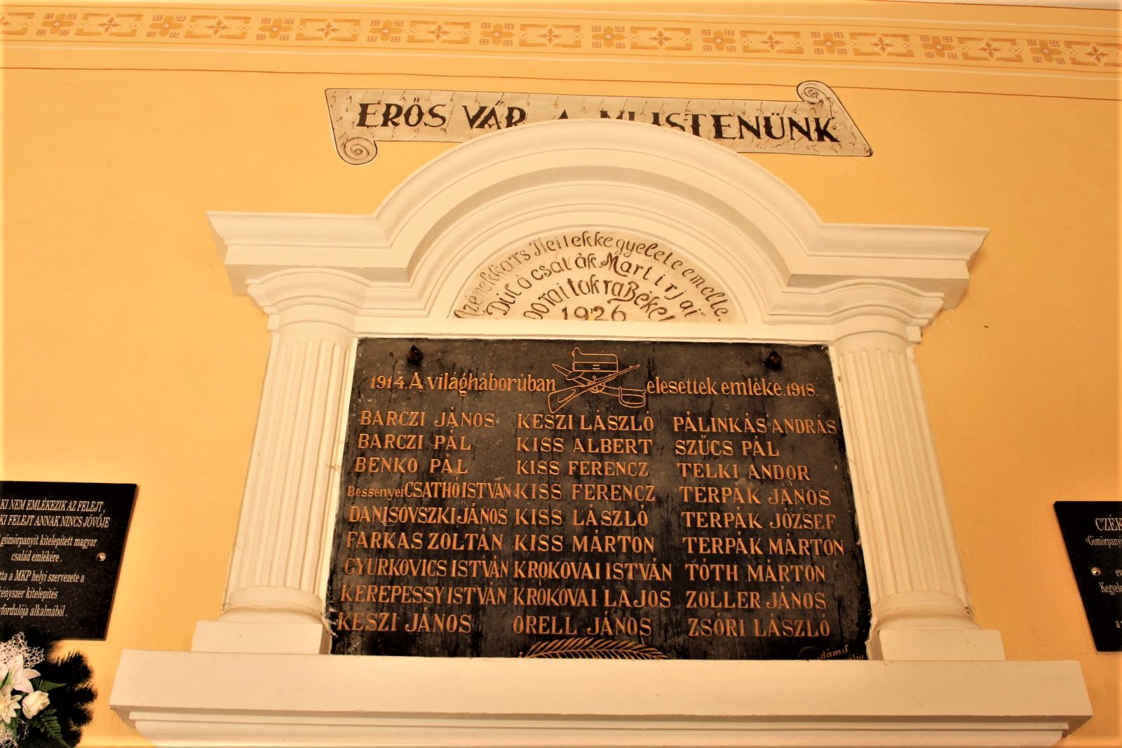 Az első világégésben elhunyt nemeshodosiak számára állított méltó emlékmű a helyi templomban található. A fekete márványtáblán a hősi halottak nevét olvashatjuk.Read More