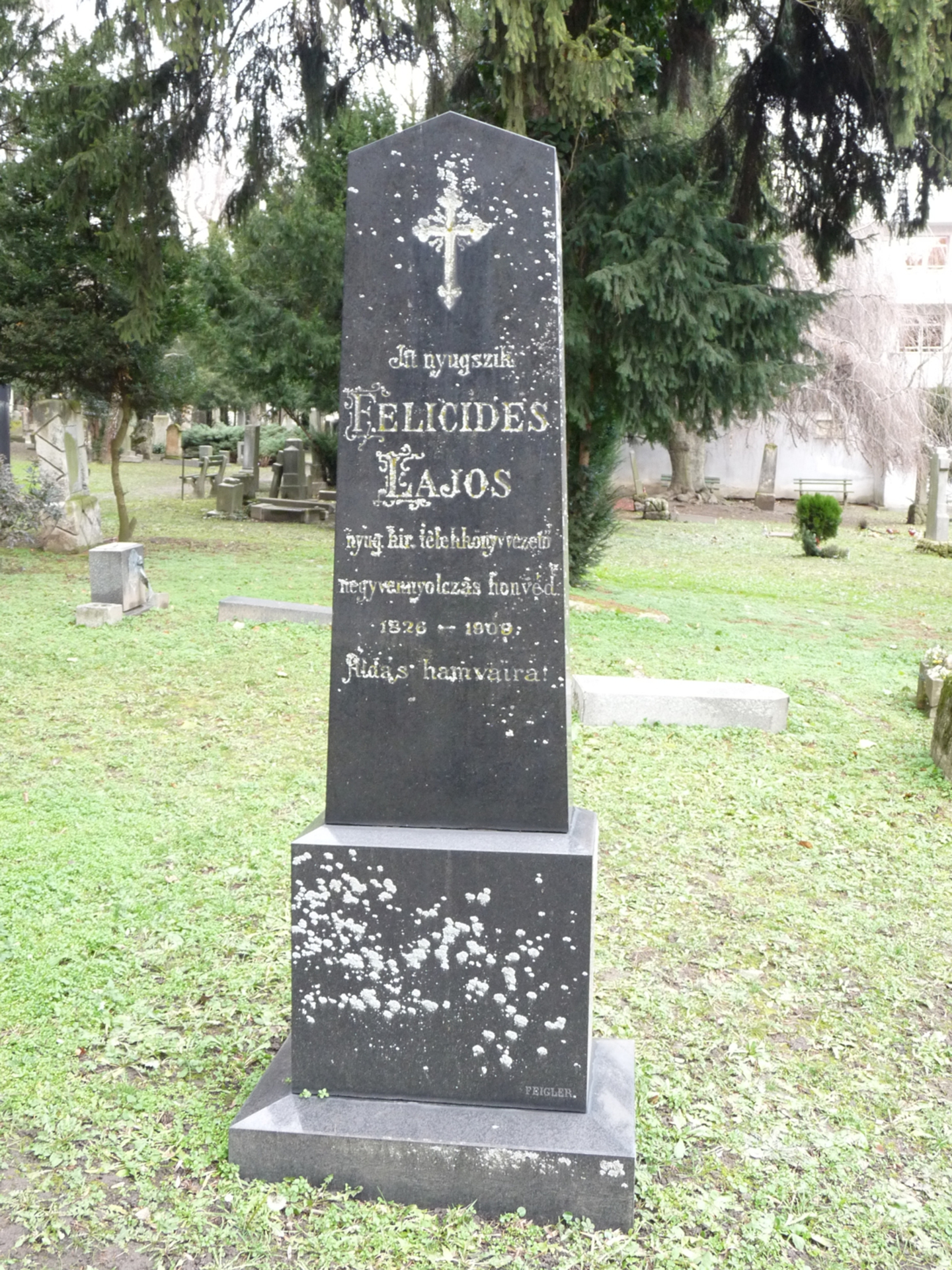 A temetőkert közepe táján találjuk a feketemárvány-obeliszket, amelyen a következő felirat olvasható: Itt nyugszik / Felicides / Lajos / nyug. kir. telekkönyvvezető / negyvennyolczas honvéd / 1826–1909. / Áldás hamvaira! / FeiglerRead More