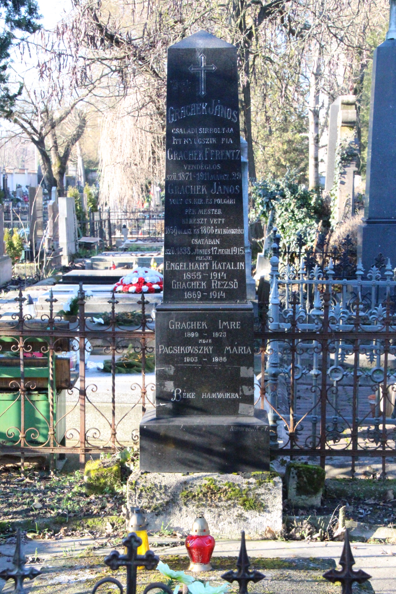 A családi síboltban Grachek János volt cs. kir. és polgári pékmester, ki részt vett 1859-ben az olasz és 1866-bani königréci csatában, neje Engelhart Katalin; fia Grachek Ferencz vendéglős, valamint Grachek Rezső, Grachek Imre és neje Pacsikovszky Mária nyugosznak. A Komáromi Lapok, 1915. március 20-án így búcsúzik tőle: Jobblétre szenderült az utolsó komáromi kucséber Komárom éjjeli...Read More