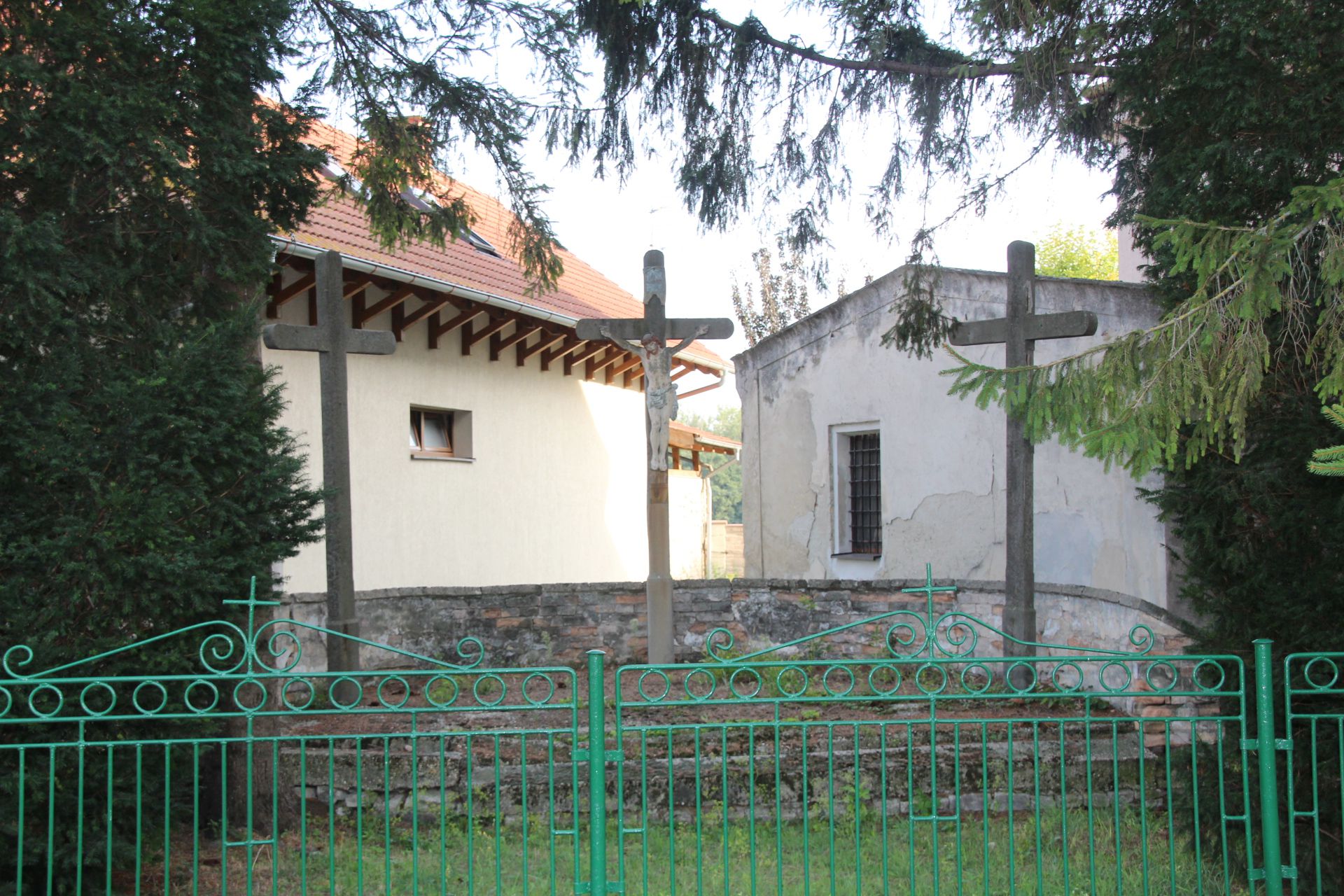 A templommal szemben, a plébánia előtt terméskő alapokon áll a három, egyenes szárvégű fakereszt, azaz a Kálvária-keresztek. (A Kálvária stációnak kiépítése a templomhoz vezető út két oldalán nemrégiben történt Dobos atya kezdeményezésére.) Az öreg Urbán pap apja készítette, illetve Krisztus keresztjét felújította. Ez a kereszt először a Házasi temetőben állt, mint központi kereszt. Utána, a...Read More