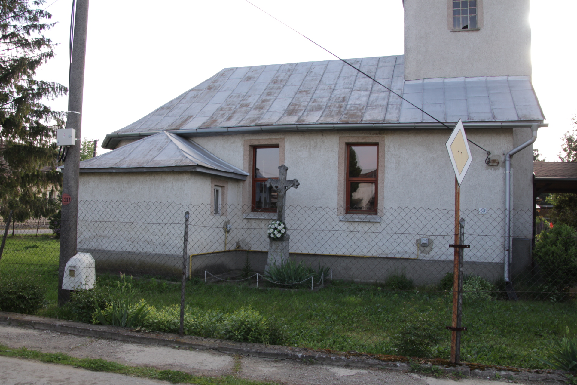A fa harangtornyos épület homokszínű, félköríves homlokzattal, keresztábrázolással. A torony alatt az építés és a felújítás dátumai láthatók. A bejárat felett félköríves ablak, valamint kis tető látszik. Az épületet 1961-ben és 2006-ban felújították.Read More