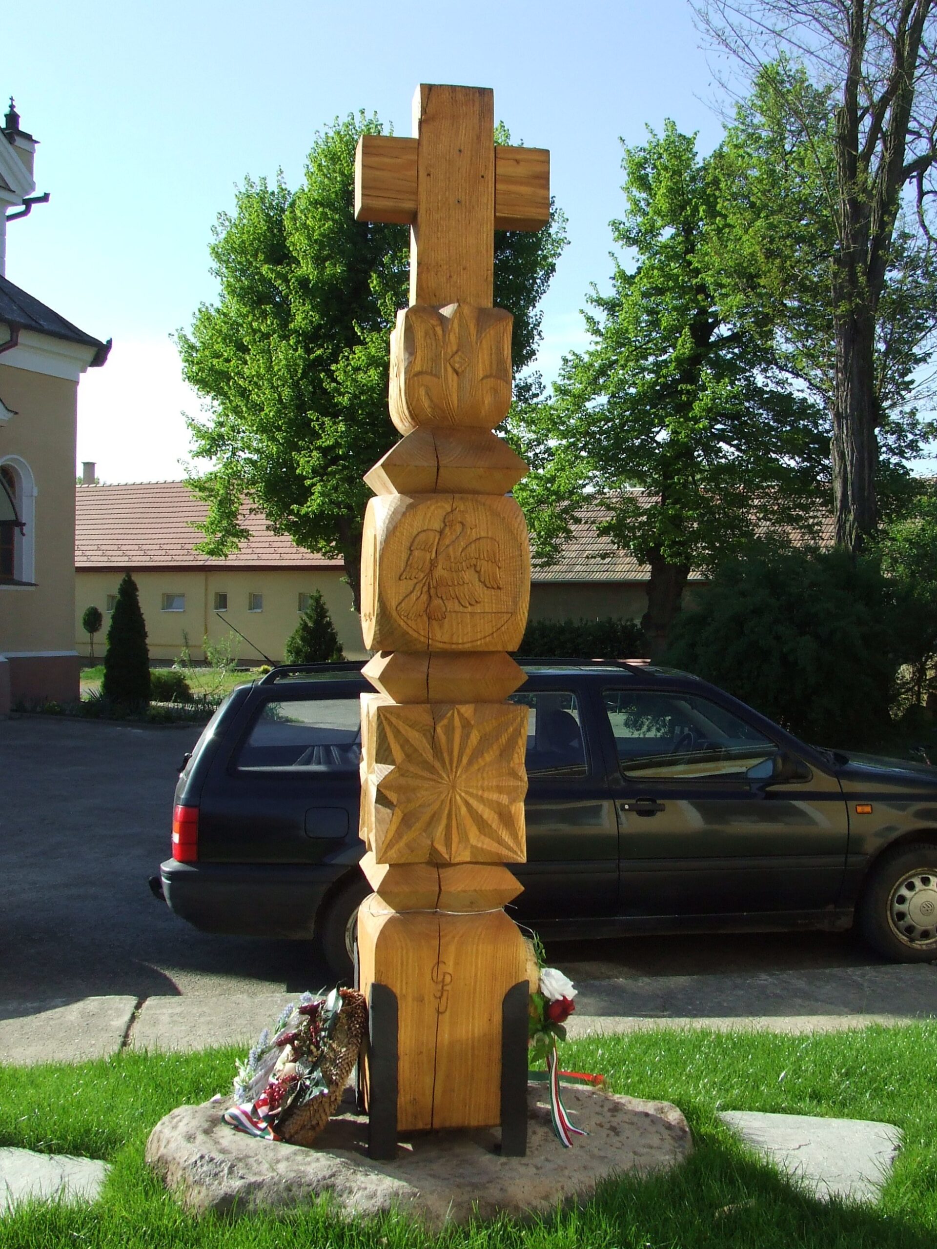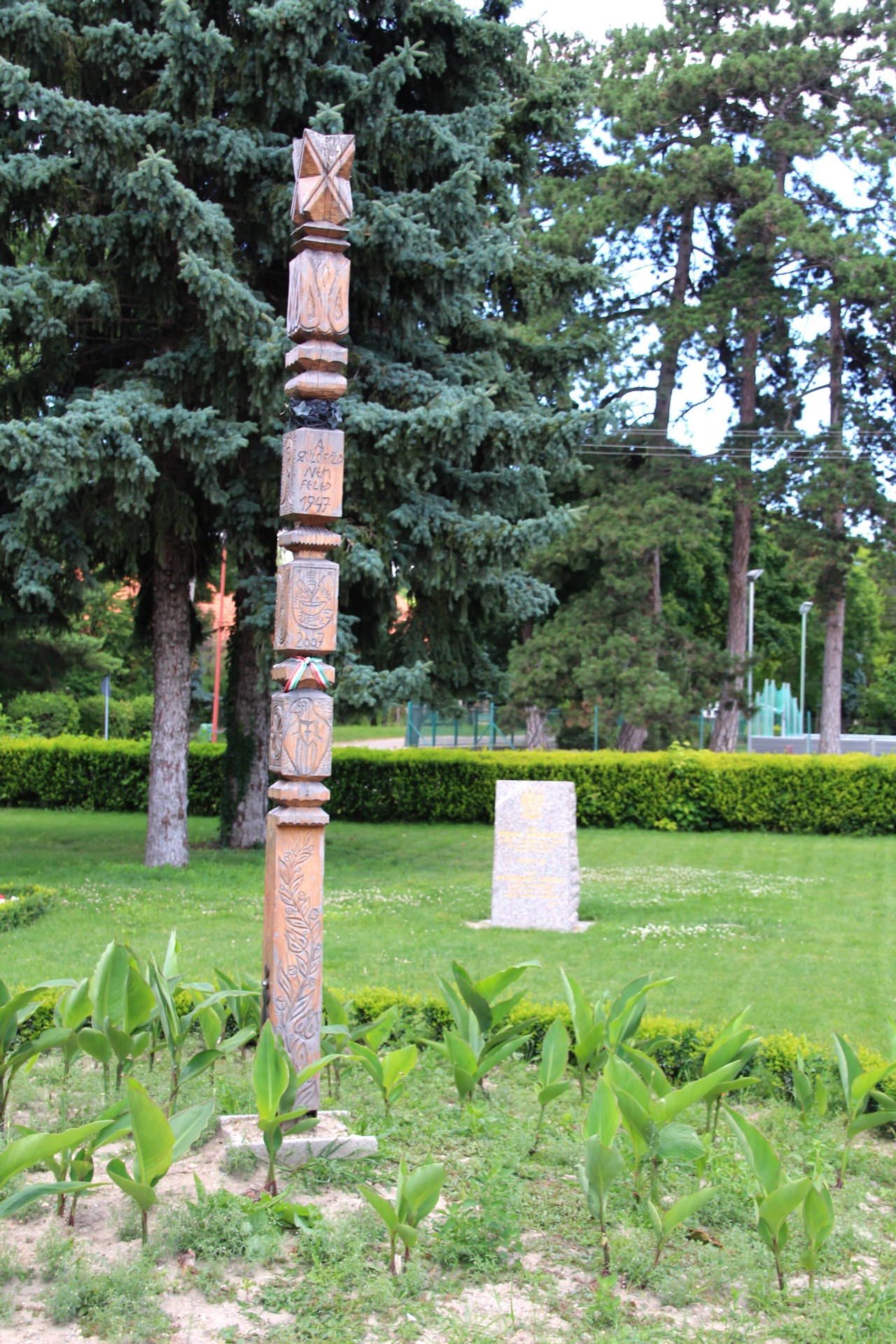 A kopjafán a település címere, az Európai Únió jelképe, a hármashalom, kereszt, zsidó csillag látható, szimbolizálva a település történelmi emlékeit.Read More