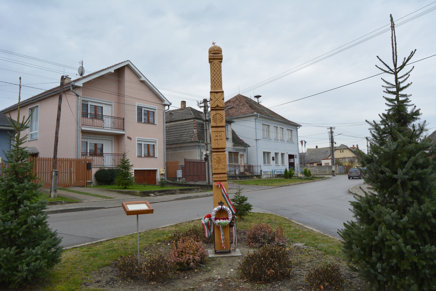 Az emlékjelet, melyet a helyi illetőségű Pócsik Antal fafaragó készített, a katolikus templom előtt található parkosított területen állították fel 2013-ban.Read More