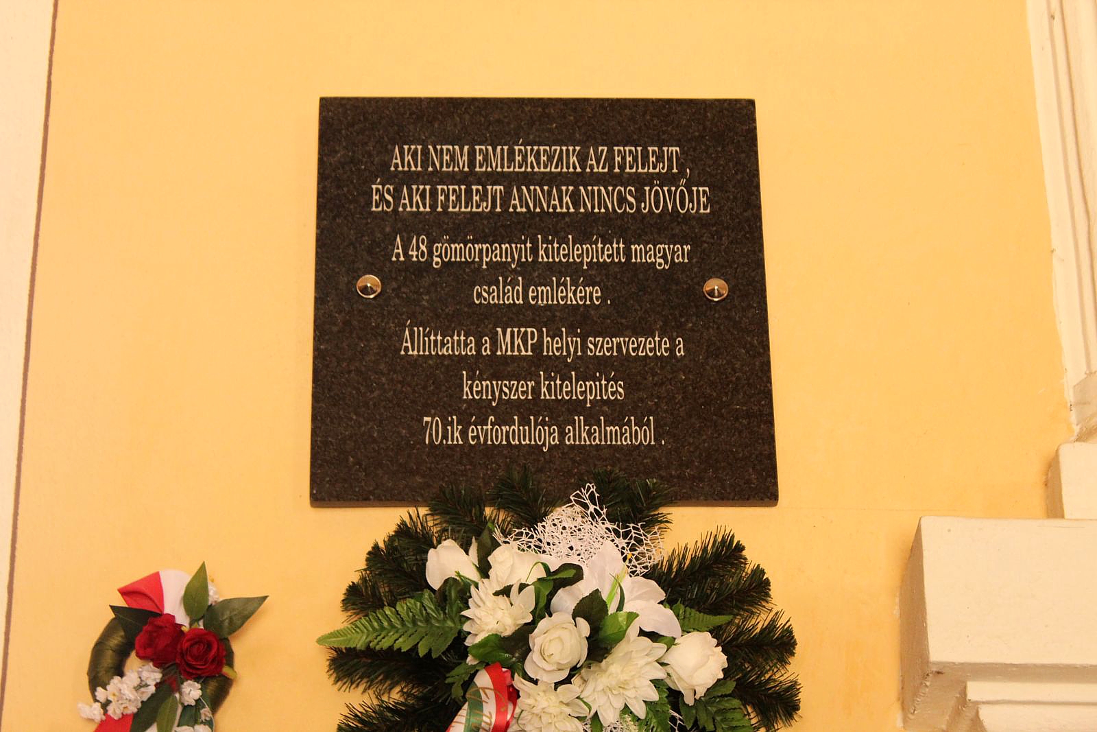 A kitelepítettek emlékére leplezték le az emléktáblát a helyi kultúrház falán. Egy évvel korábban hasonló emléktábla került az ekecsi kultúrház falára is.Read More