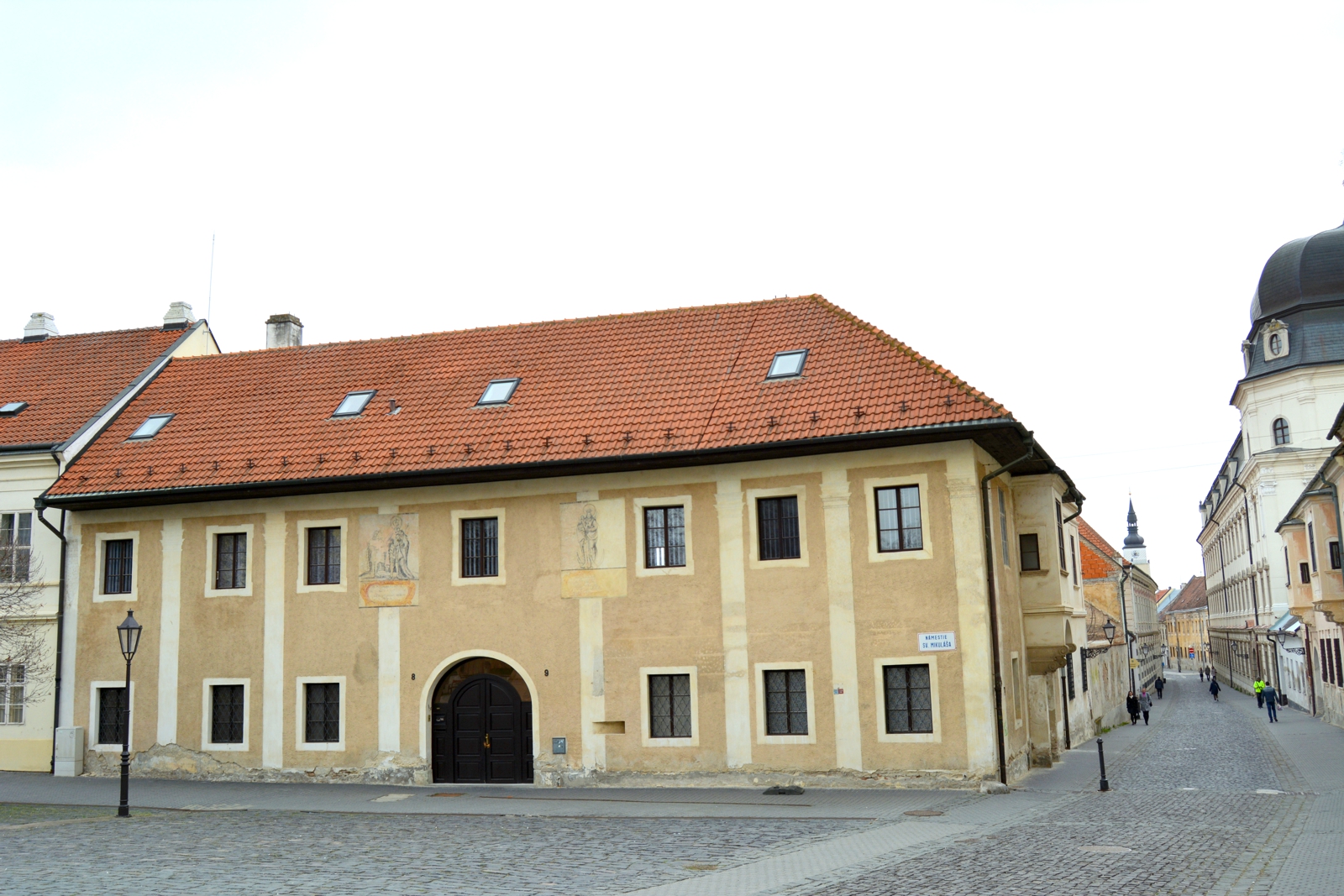A Szent Miklós téren (régi magyar nevén: Főtemplom tér) álló kanonokház középkori eredetű épület. A bejárat fölött, az első emelet magasságában, két festménytöredék látható. Az egyik Szent Imrét és Szent Istvánt ábrázolja, a másik a holdsarlón álló Szűz Máriát. A képek alatti feliratok (kronosztikonok) sajnos már nem teljesek, így az ott „elrejtett” évszámok sem határozhatók...