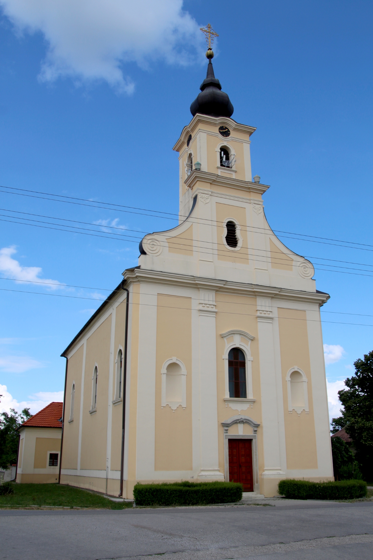 A község legmeghatározóbb építménye. 1707-ben építették a régi templom helyén 1725-ben átépítették, és ekkor nyerte el jelenlegi formáját. A főépület egyhajós, amelyhez mellékoltár tartozik. A templom belsejét Jakobey mester freskói díszítik, amelyek 1881-ben készültek. A két oltárfestmény 1996-ban készült és P. Stach munkáját dicséri. Értékes emlékmű a templomban található fából készült Szűz Máriát ábrázoló dombormű...Read More