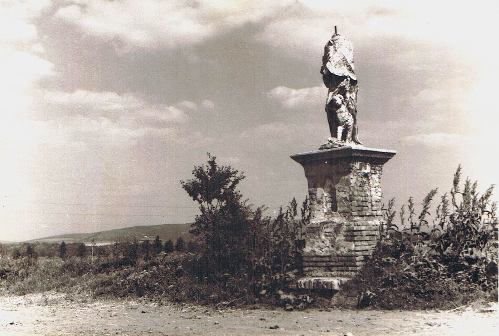 A szobor a Kistata pusztára vezető, ún. Szent János út mellett volt, egy kisgyereket ölelt át kezével. Mára már csupán a talapzata áll, a szobor darabjai ott hevernek mellette. A mellékelt fotó az 1960-as évek végéről származik.Read More