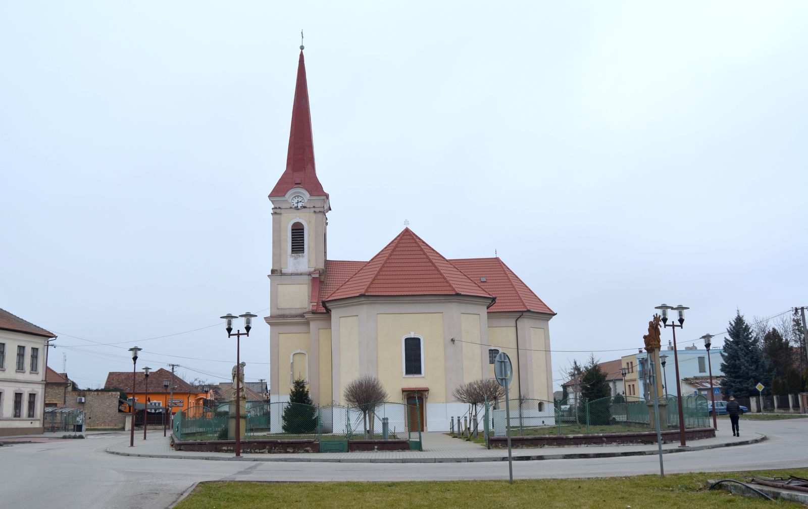 A mai falu főterén, a templommal szembeni kis parkban áll Szent István szobra. Ezt Krisztiáni Sándor fiatal magyarországi szobrászművész készítette 2001-ben. A sárgás színű szobor Szent István álló alakos megformálása. A király lábával egy köre helyezkedik, bal kezében hosszú kettős keresztet tart. Fején ott a Szent Korona, palástjának mellső részén pedig szintén egy kettős kereszt...Read More