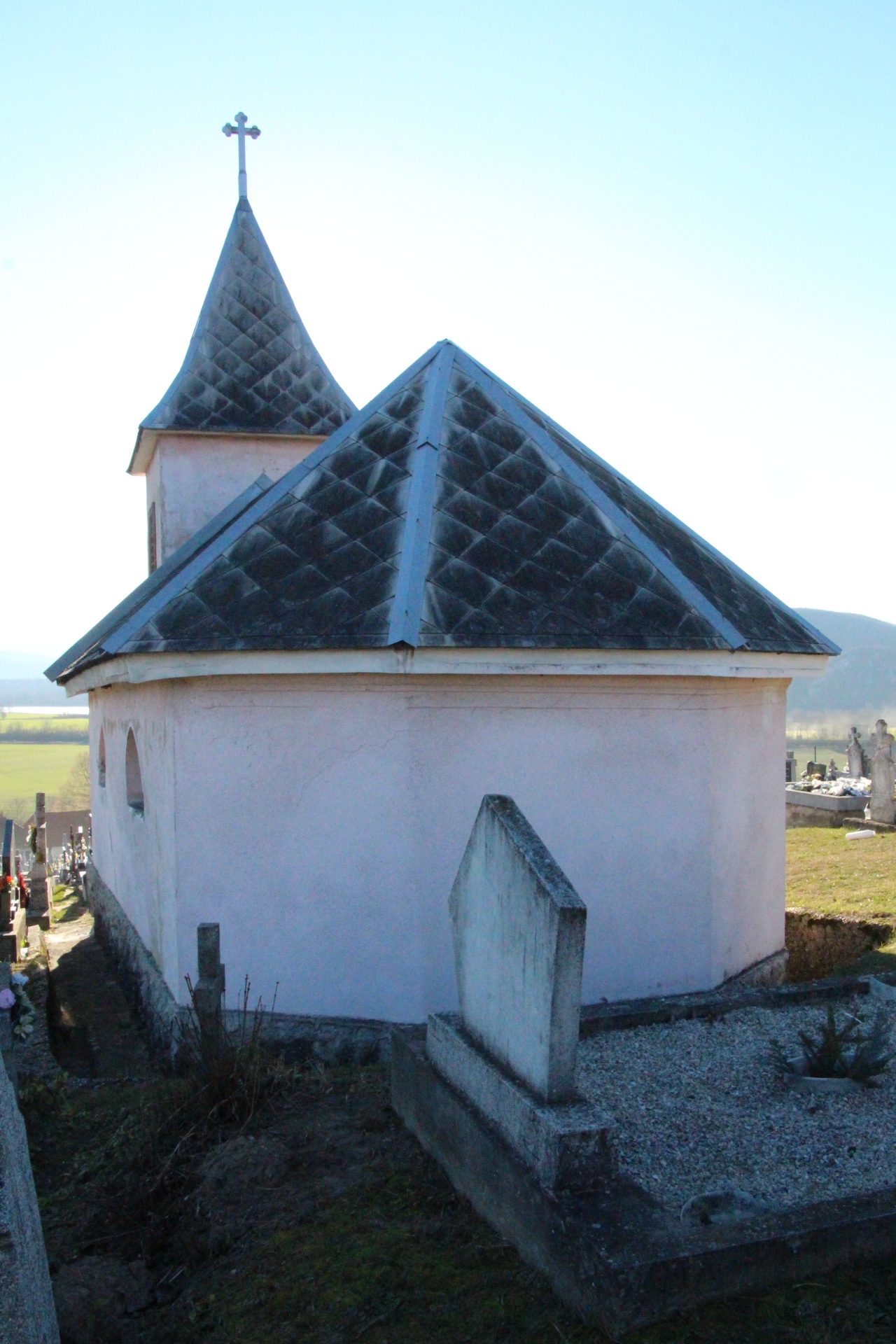 Az egykori katolikus temető főbejáratával szemközt található, tájolása észak-kelet irányú. Az egyik idős női adatközlőm a kápolnával kapcsolatban így nyilatkozott: … meg aztándig azír híták Rozáliának, mer ezt is egy gazdag ember ípítette, akinek hát ölíg sok vagyona vót. Úgyhogy aztán annak a felesíge is talán Rozália vót, így hallottam…(2) Szlovákia műemlékeit összegyűjtő jegyzékében így...Read More