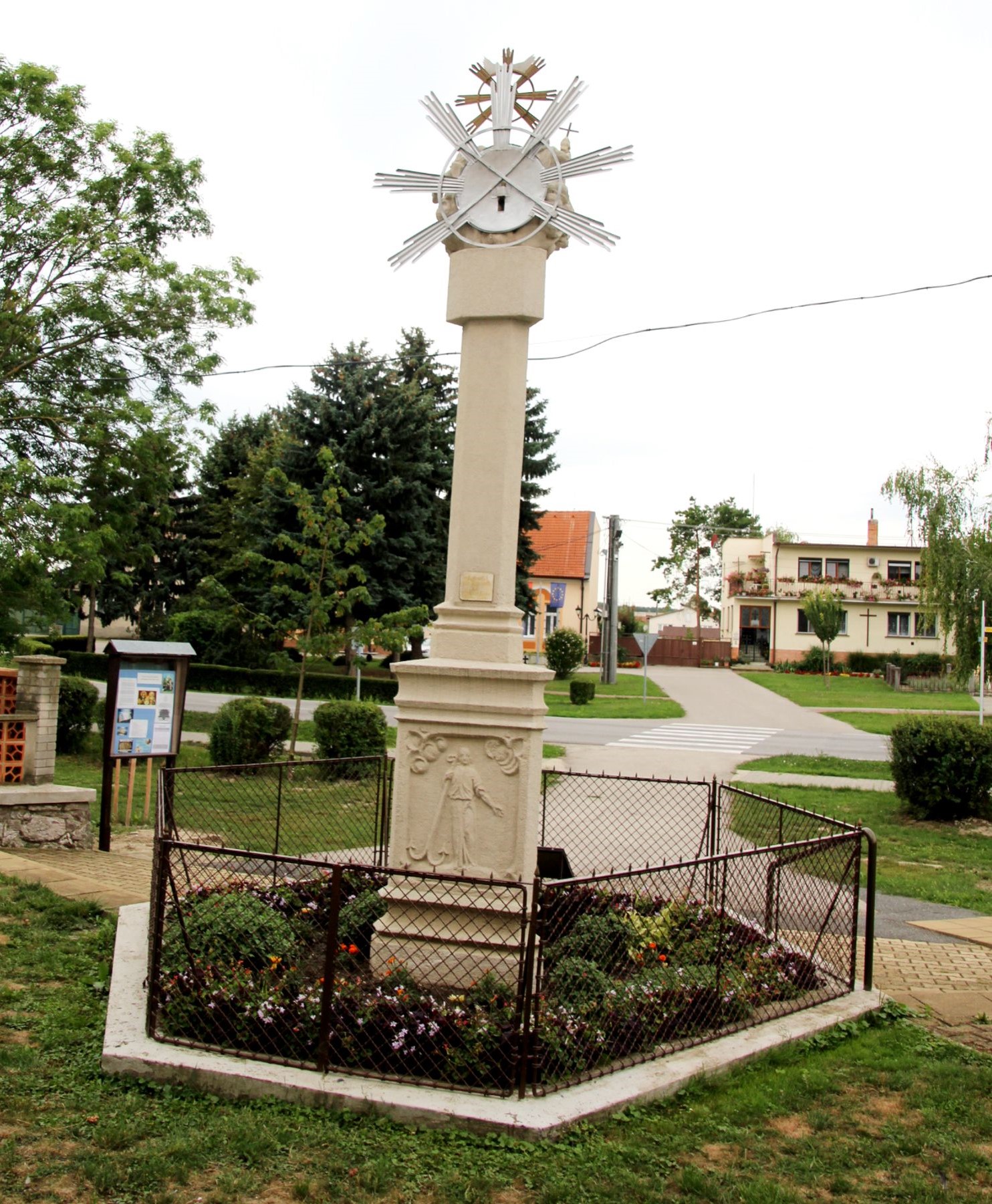 A település legszebb köztéri szobra a Szentháromság-szobor a falu déli részén, a valamikori vásártér bejáratánál áll. A fákkal övezett tér ma is egyik legszebb része a falunak. A szobor három egységből épül föl. A talapzat alsó részén egy süllyesztett márványtáblát helyeztek el a következő felirattal: Felújíttatta a község / önkormányzata 2000-ben Fölötte a talapzat felső részén...Read More