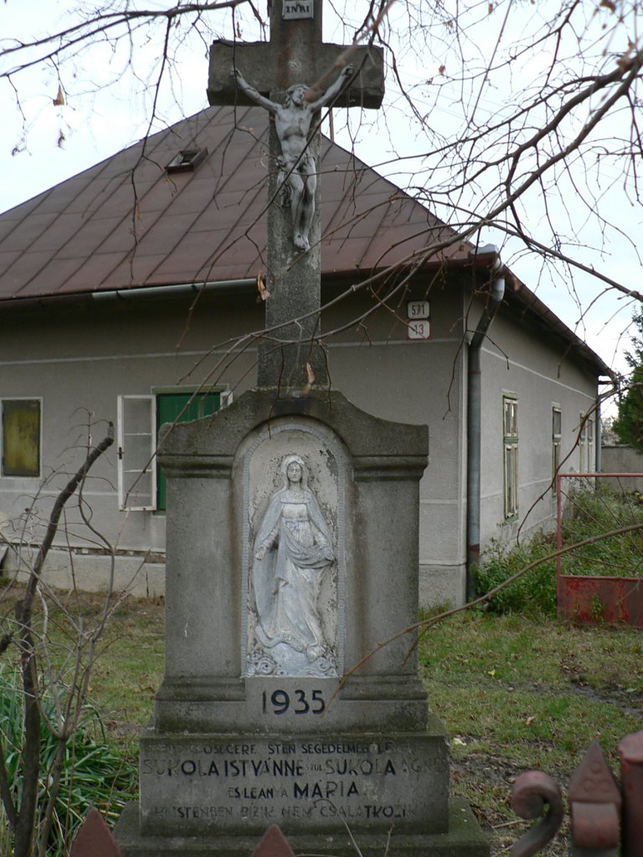 Az 571-es számú ház udvarában található a vaskorpuszú, műkőből készült, útmenti kereszt, melyet Isten dicsőségére 1935-benn Sukola Istvánné szül. Sukola Ágnes és leánya Mária emeltettek. Szeplőtelen Szűz Mária domborműve négyszögletű talpazaton van elhelyezve.Read More
