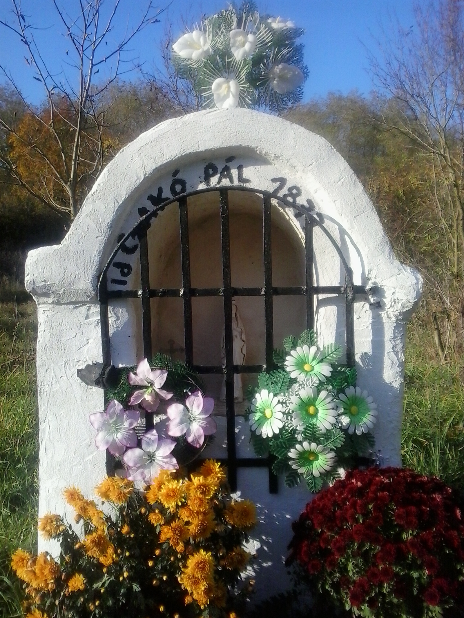 A szoborfülkés képoszlop évtizedek óta üresen állt. Tulajdonosa a megrongálástól való félelmében (közelében a szovjet katonák őrhelye volt) kimentette onnan a Mária-szobrot. 2010 körül a család felújította, és visszahelyezte az eredeti szobrot is.Read More