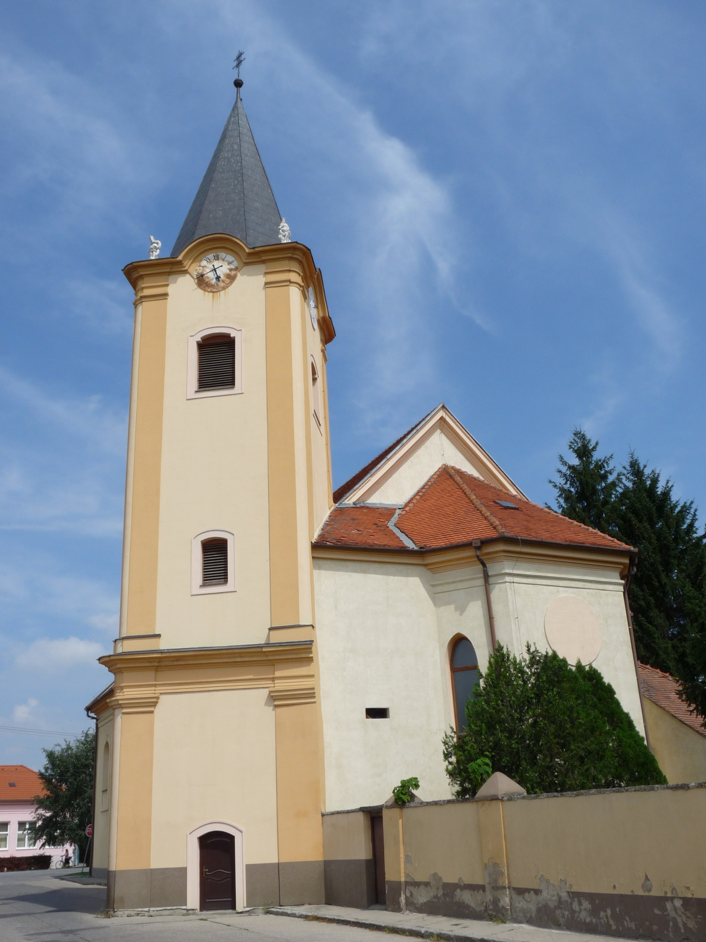 „A barokk római katolikus templomot Szűz Mária Szentséges Nevének tiszteletére emelték, a 18. század közepén épült. Később több ízben felújították és javították. Az 1995-ös legutóbbi átalakítások, főleg a hajó eredeti ablakainak érzéketlen kicserélése műanyagokra, káros hatással voltak az épület külsejére. A templom egyhajós épület a szentély félkör alakú lezárásával, hozzáépített sekrestyével és mellékkápolnával. Valamint az...Read More