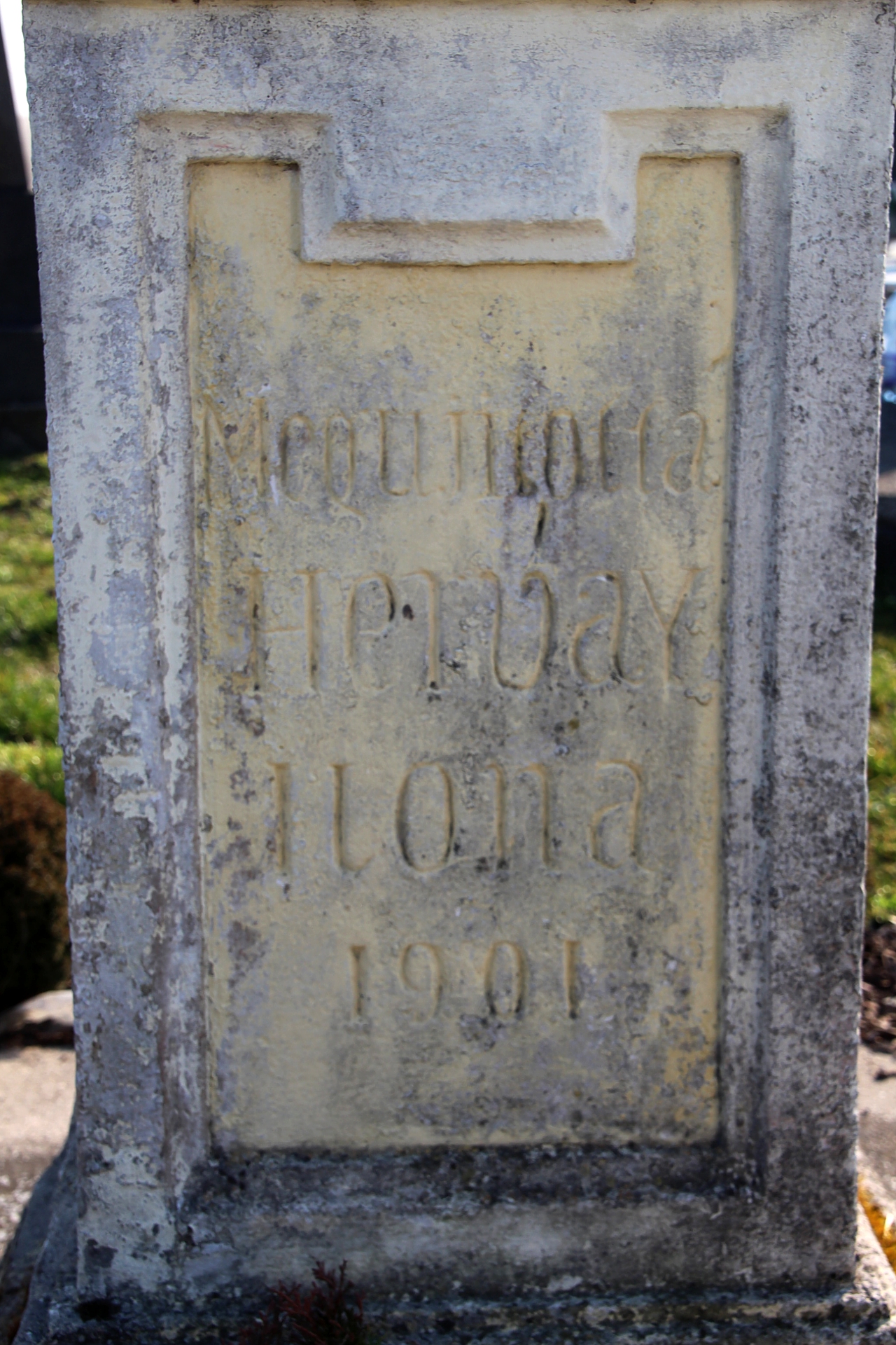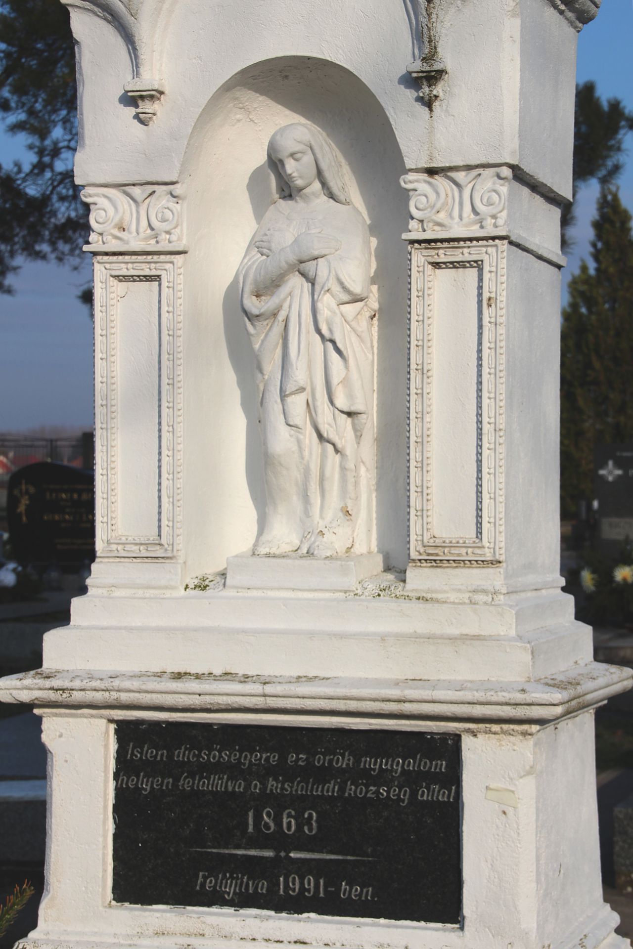 Rózsaszínű süttői márványból készült az egész kisemlék, amely jelenleg a Szent Rozália kápolna mellett, annak baloldalán van elhelyezve. Mostani helyére a temető parkká alakításakor került. Lábazata két részből áll; felső, oszlopszerűen kialakított részének közepén vésett, ezüstszínű festékkel átkent felirat, évszám látható: 1892. A felirati mező táblaszerűen lett kialakítva, sötétebb színű, úgy tűnik, mintha az idők...Read More