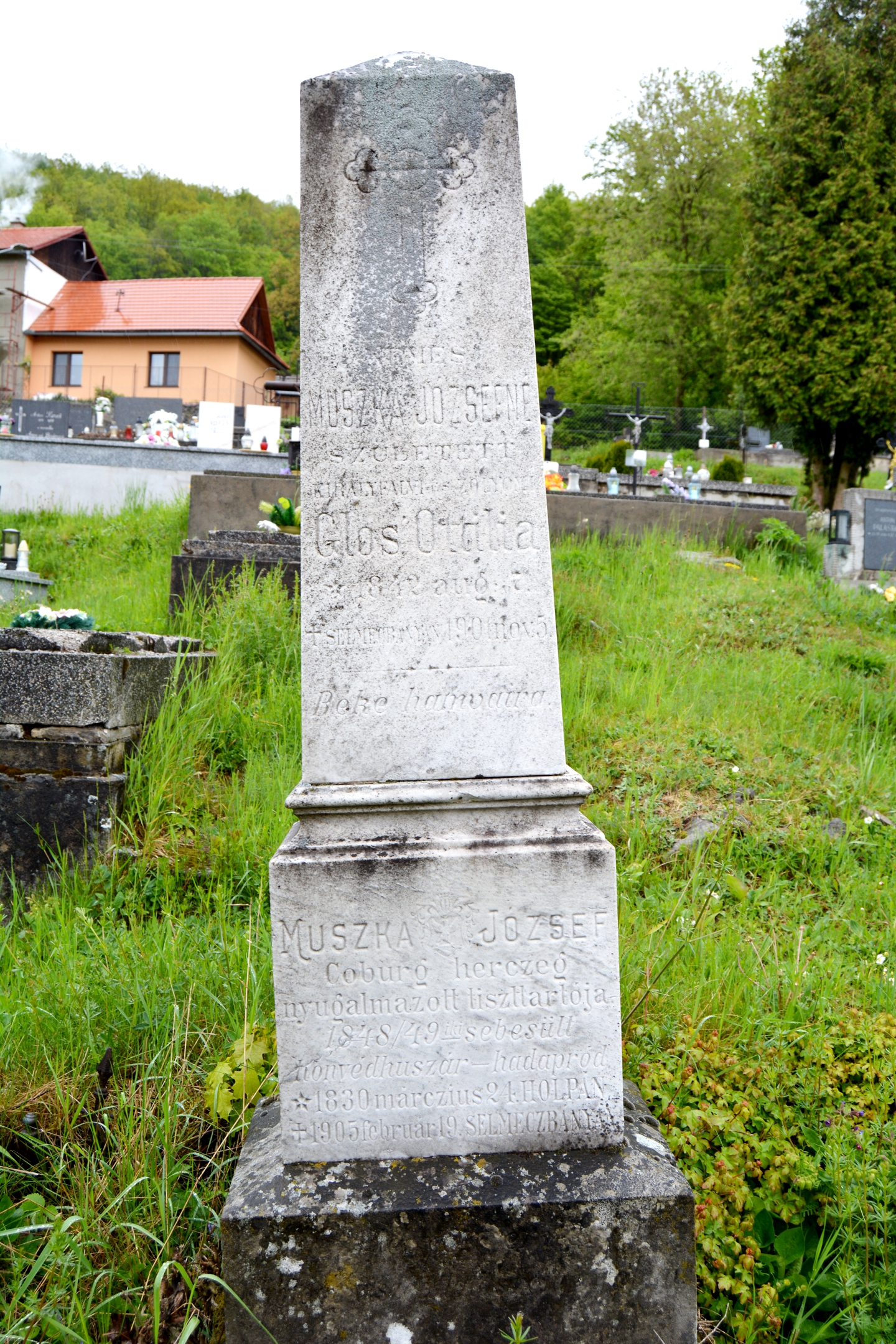 Muszka József 48-as honvéd-huszár a szabadságharcz után a Koburg herczegi család tiszttartója, később pedig Selmecz és Bélabánya városok közgyámja. 78 éves korában Selmeczbányán halt meg. A hiányos kovácsoltvas kerítéssel övezett, gondozatlan sírt a temető bejáratától balra, a domb oldalában találhatjuk.Read More