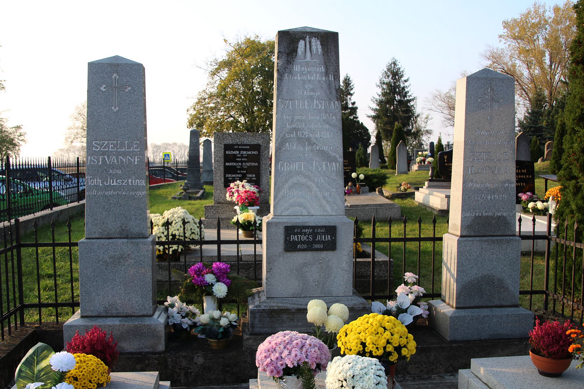 A Szelle család sírkertjében három síremlék található: a középső síremlék Nagyabonyi Szelle István királyi járásbíró, 1848/49-es honvéd főhadnagy valamint Gróff István és Patócs Júlia síremléke. Tőle balra Szelle Istvánné szül. Tóth Jusztina, a volt járásbíró özvegye – jobbra Szelle Ilonka a volt járásbíró leánya nyugosznak.Read More