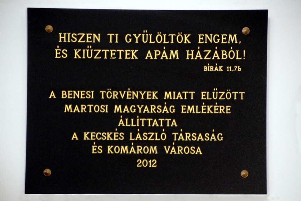A Beneš-dekrétumok által meghurcolt martosi magyarság emléktáblája (szobor, emlékmű, emléktábla) (Martos [Martovce])