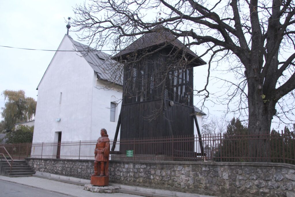 A közvetlen szomszédságában fából készült harangláb áll, amelyben a két harang egyike a középkorból, a 15-16. századból származik.
