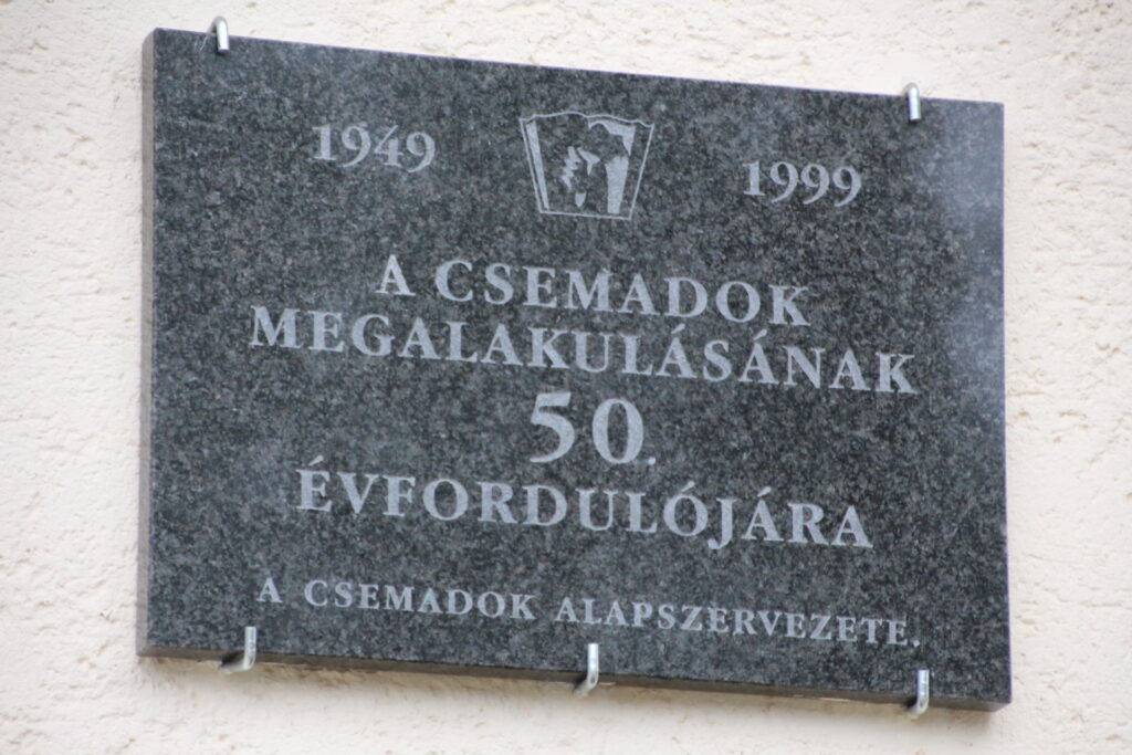 | Felirat | 1949 1999 / A CSEMADOK / MEGALAKULÁSÁNAK / 50. / ÉVFORDULÓJÁRA / A CSEMADOK ALAPSZERVEZETE. |