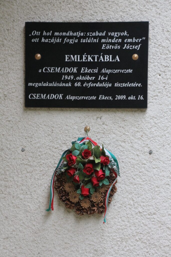A Csemadok megalakulása 60. évfordulójának emléktáblája (szobor, emlékmű, emléktábla) (Ekecs [Okoč])