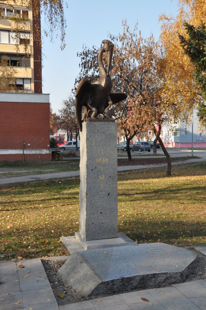 A fiókáit tápláló pelikán szobra (szobor, emlékmű, emléktábla) (Dunaszerdahely [Dunajská Streda])