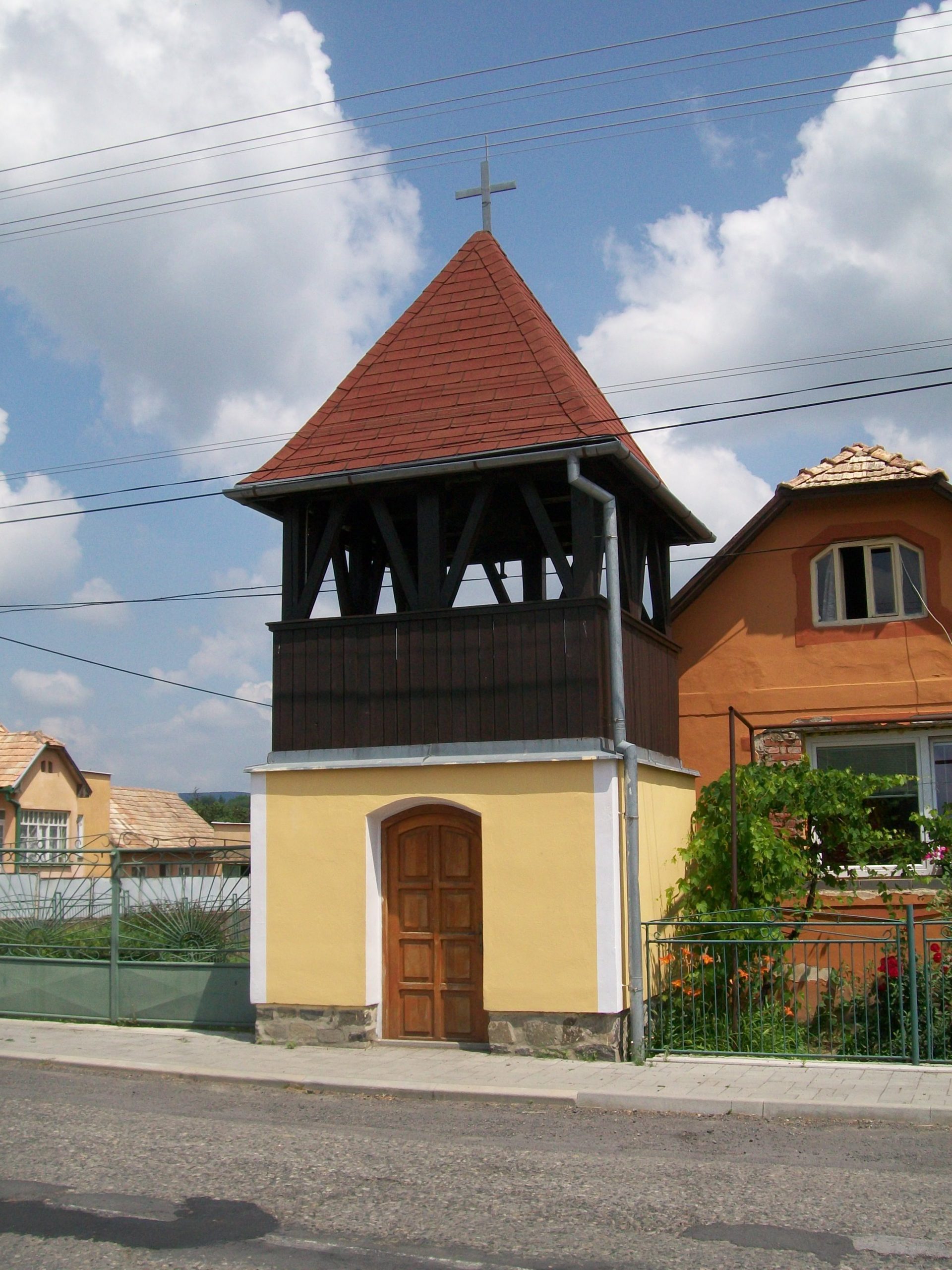 A falu közepén áll a harangláb.