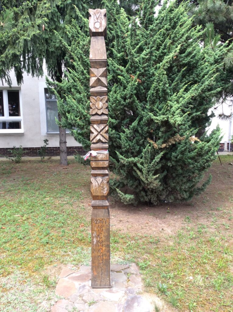 A kitelepítés emlékének kopjafája (szobor, emlékmű, emléktábla) (Pozsonypüspöki [Podunajské Biskupice])