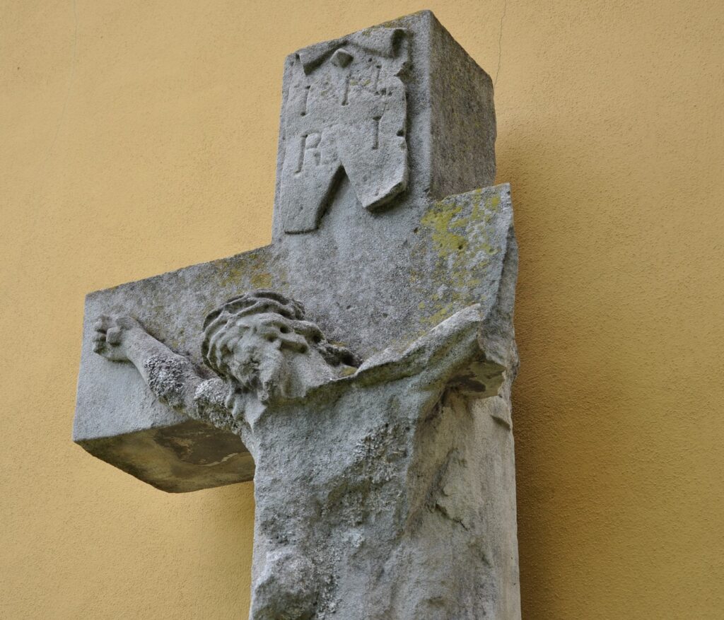 A nagyszarvai temető régi nagykeresztje (szakrális kisemlék, temetők, sírkövek, sírhelyek) (Nagyszarva [Rohovce])