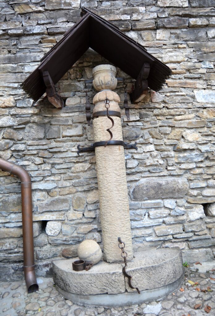 A szégyenoszlopot a várudvar teraszfala mellett állították fel. Eredetileg az Alsókubín melletti Nagyfaluban (Veličná) szolgálta a törvényt.