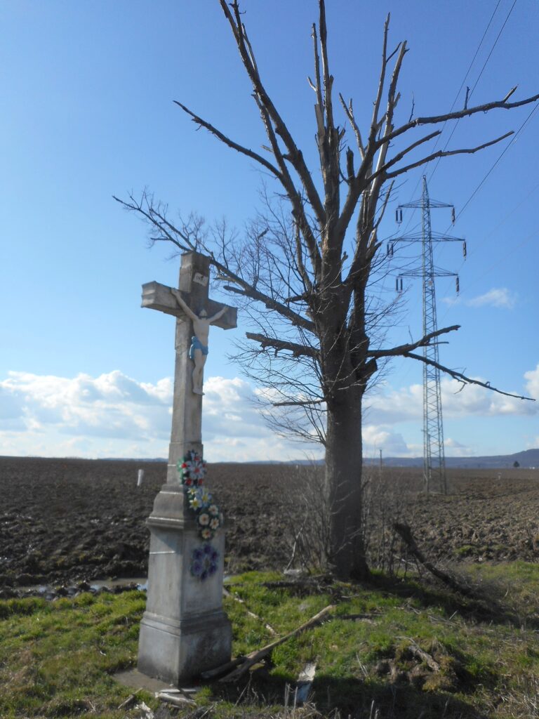 „Az inámi főút jobb oldalán, ahol valamikor az Ipolybalogra vezető földút kezdődött, áll egy XIX. század eleji, betonalapzatú szürkemárvány-kereszt, színezett vaskorpusszal. A keresztszárak díszítettek, a felső részén INRI felirattal. Az alsó részén egy korpusz nélküli keresztalakzat, egy létra és egy lándzsa látható. Régebben a keresztet egy léckerítés vette körül.”